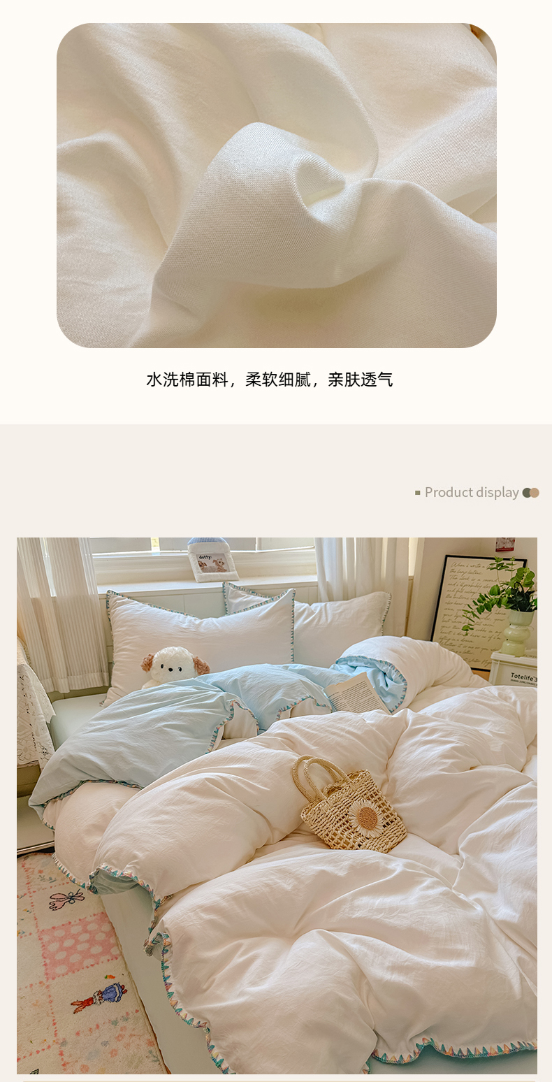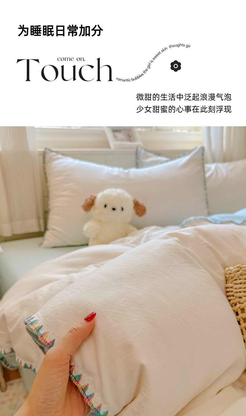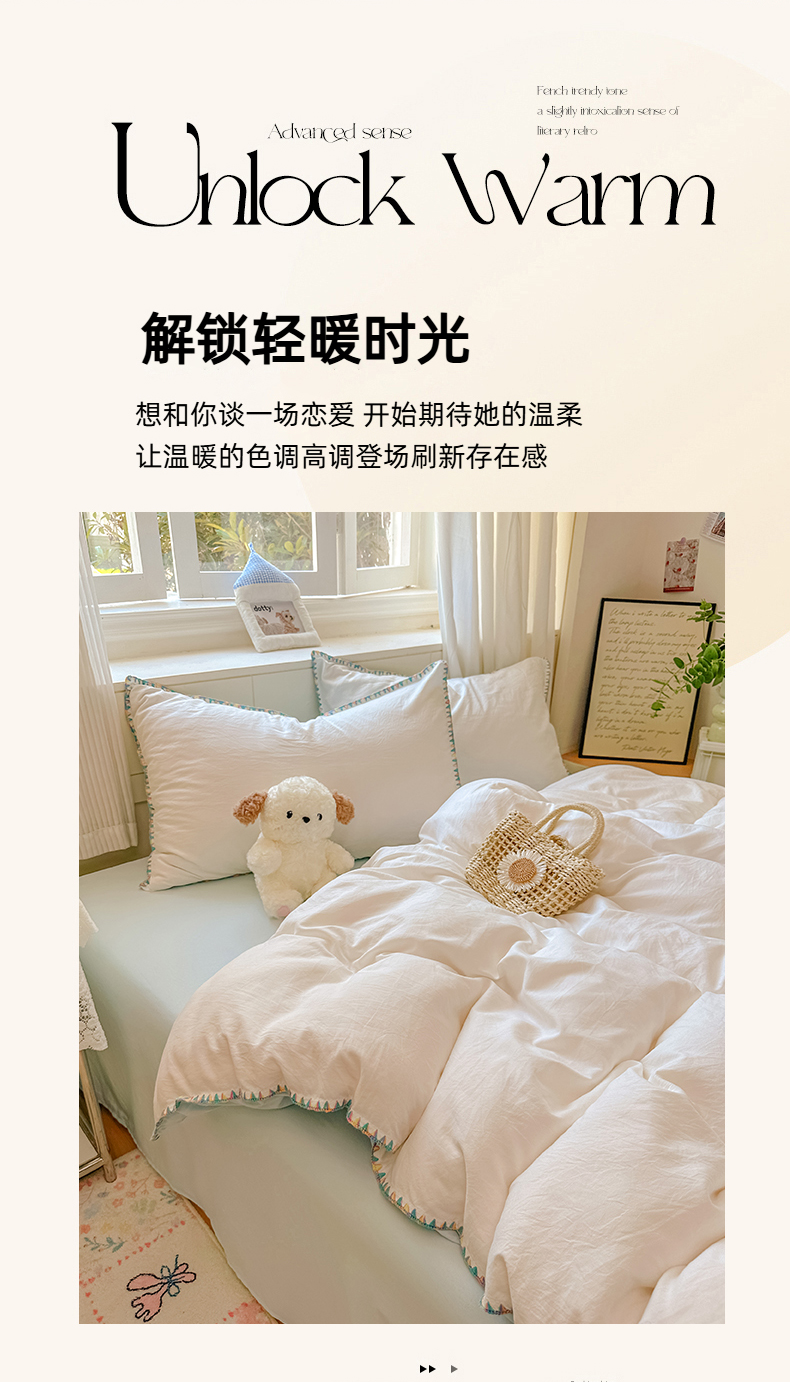 当前位置: 91家纺网 > 商品网购 > 床品套件 > 四件套 > 水洗棉四件套 > 冕悠家纺 2025新款A类七彩贝壳边水洗棉四件套 七彩-春芜绿奶白