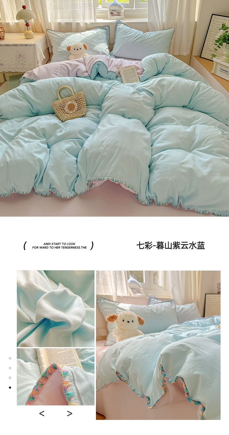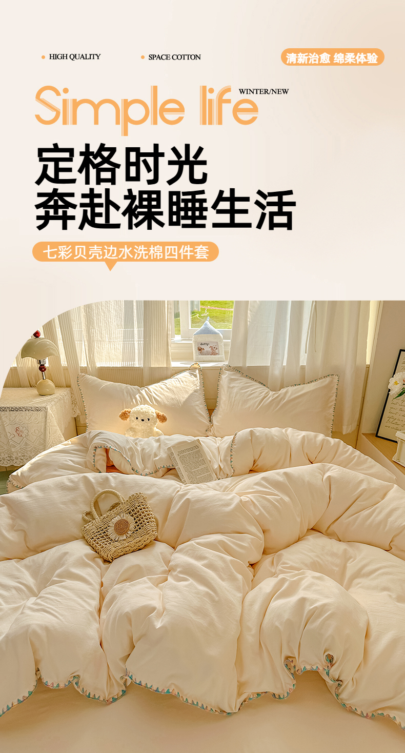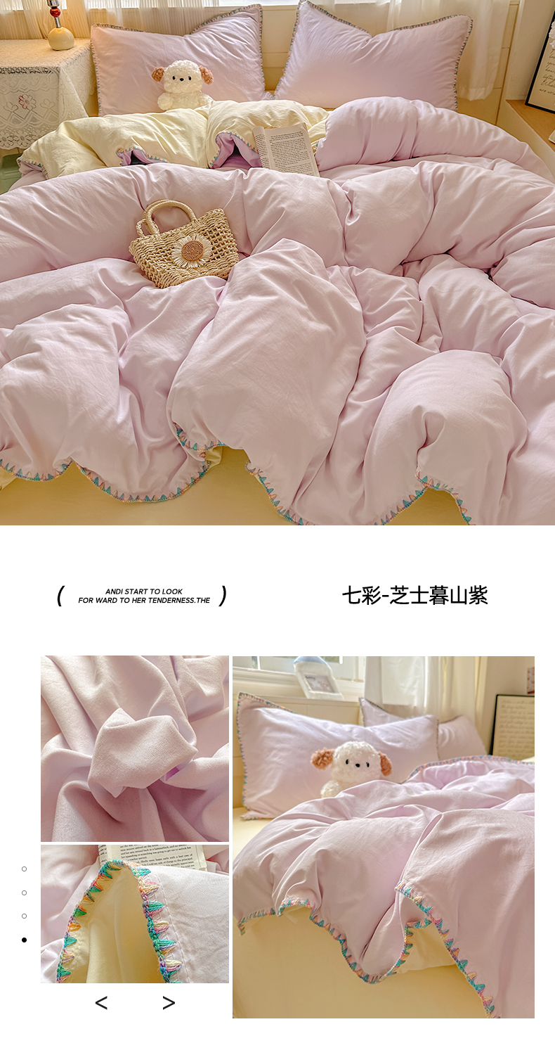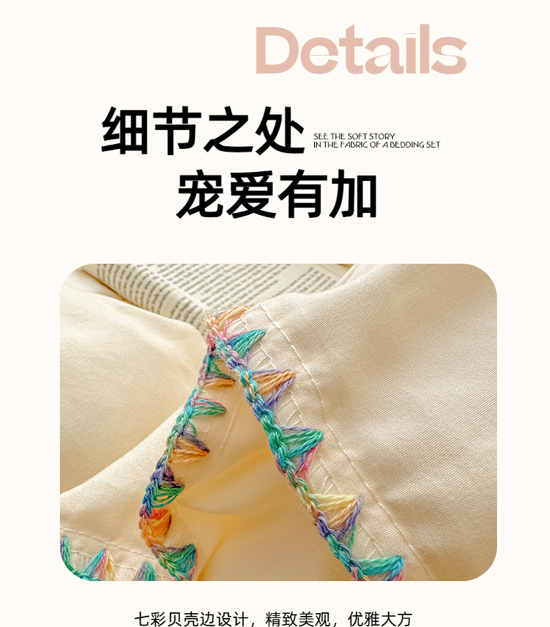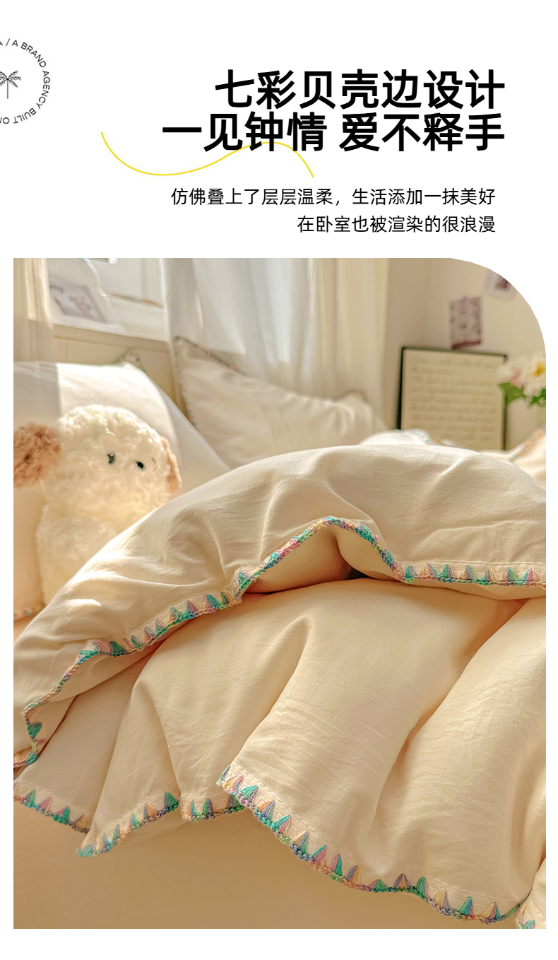 当前位置: 91家纺网 > 商品网购 > 床品套件 > 四件套 > 水洗棉四件套 > 冕悠家纺 2025新款A类七彩贝壳边水洗棉四件套 七彩-芝士粉