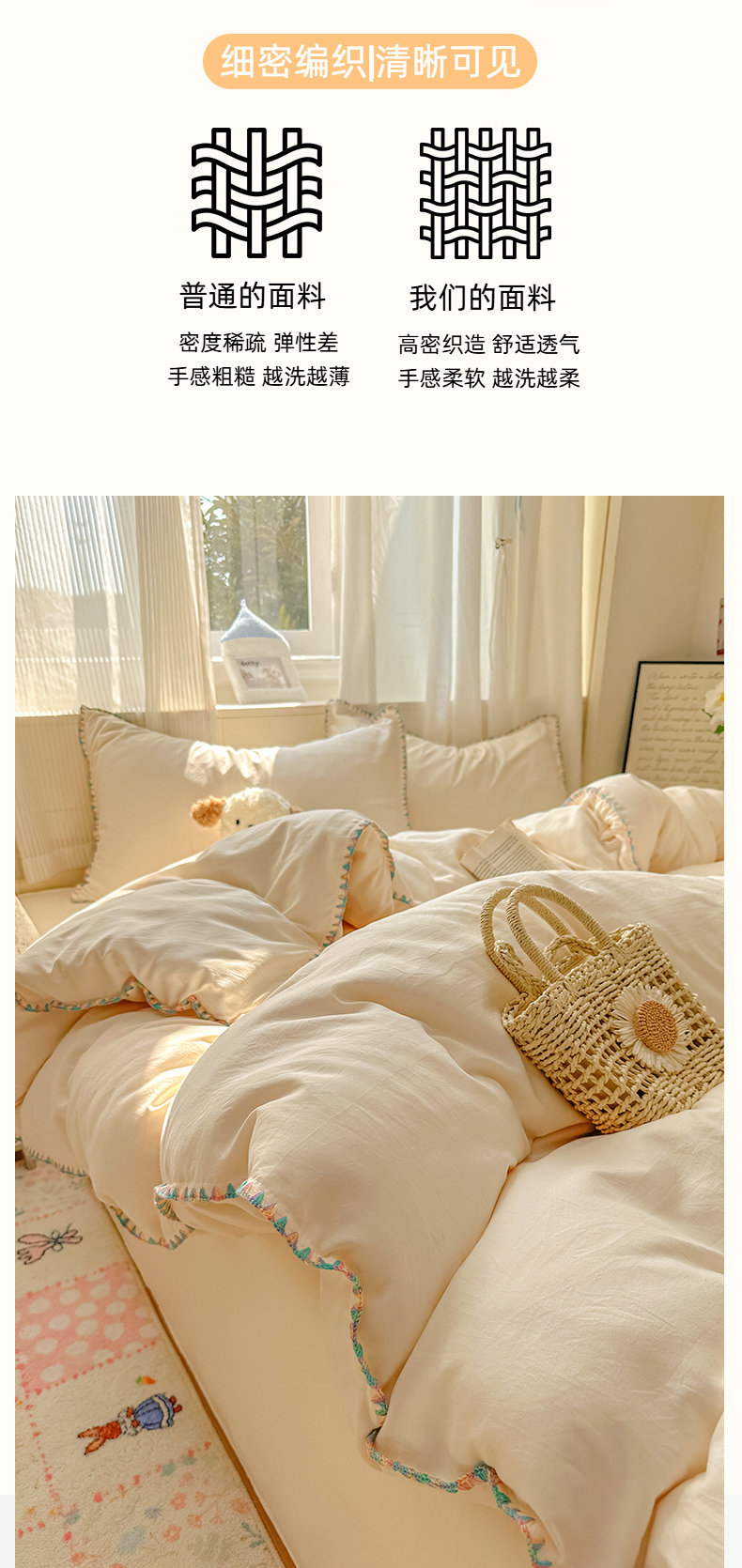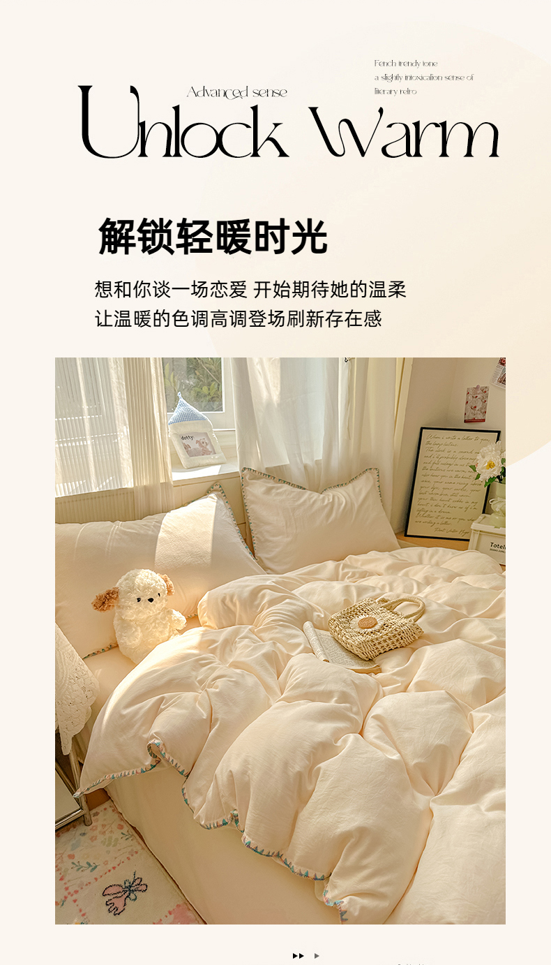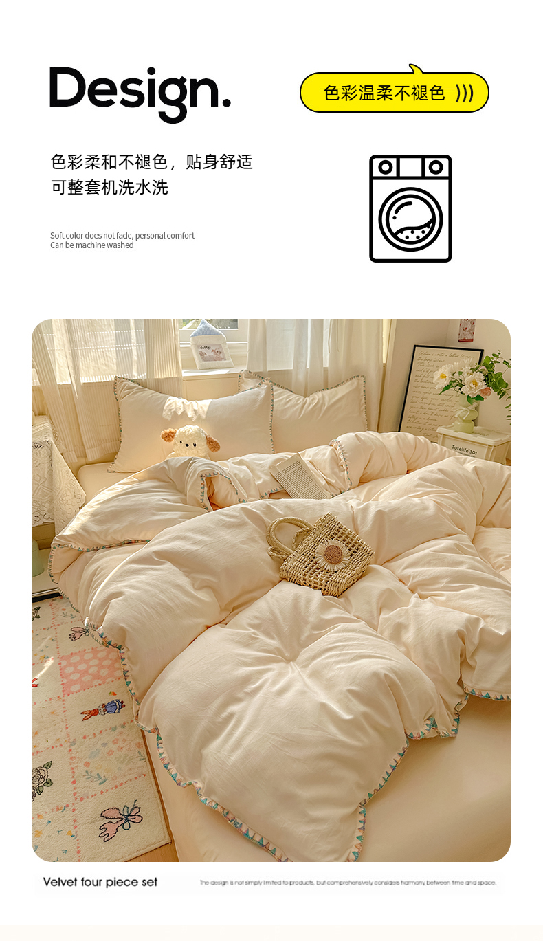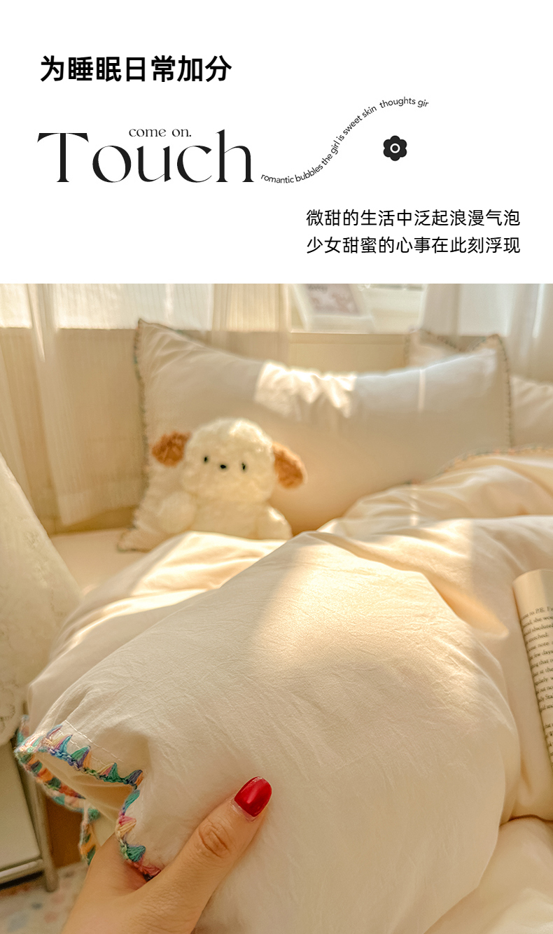当前位置: 91家纺网 > 商品网购 > 床品套件 > 四件套 > 水洗棉四件套 > 冕悠家纺 2025新款A类七彩贝壳边水洗棉四件套 七彩-芝士粉