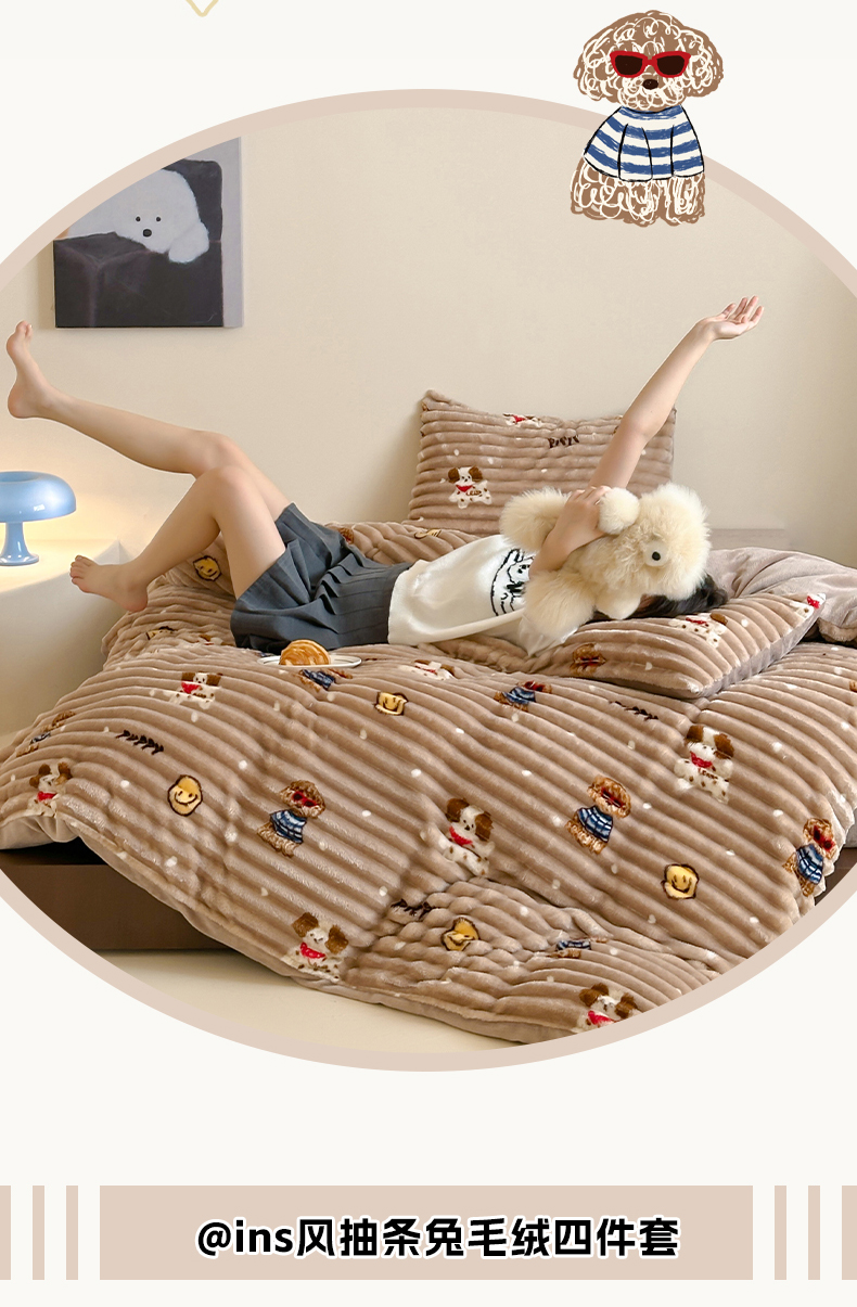 当前位置: 91家纺网 > 商品网购 > 床品套件 > 四件套 > 牛奶绒四件套 > RYB红黄兰 2025新款设计师原创A版抽条兔兔绒B版牛奶绒印花四件套 星星蝴蝶结