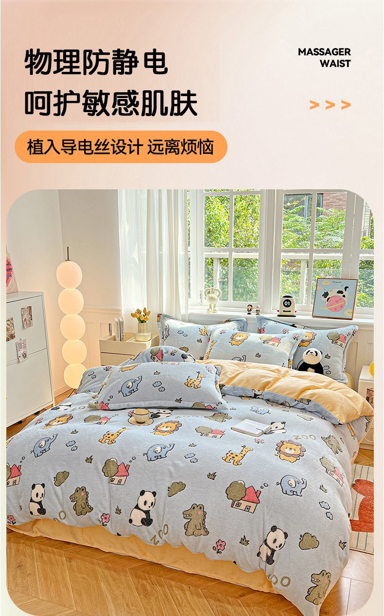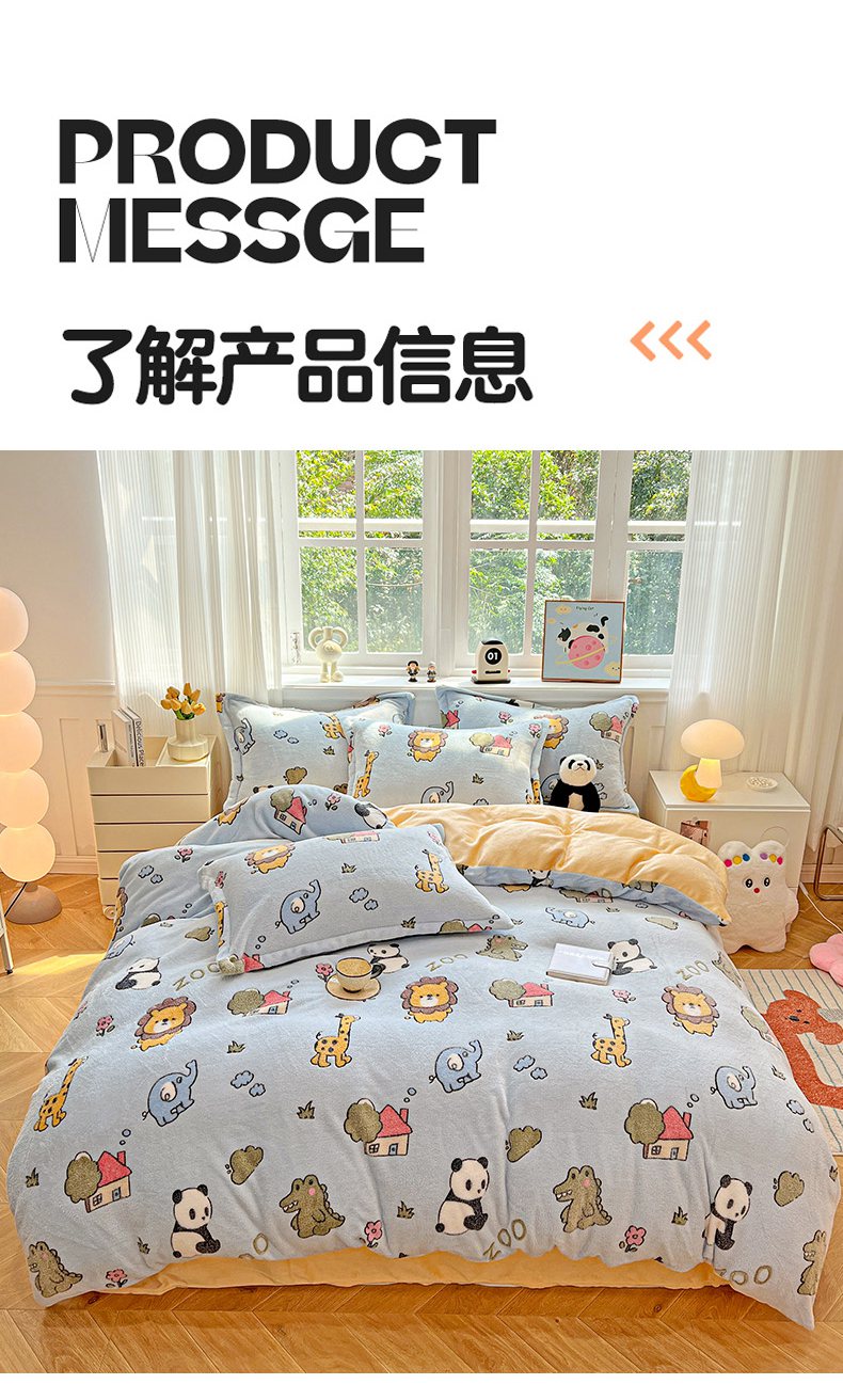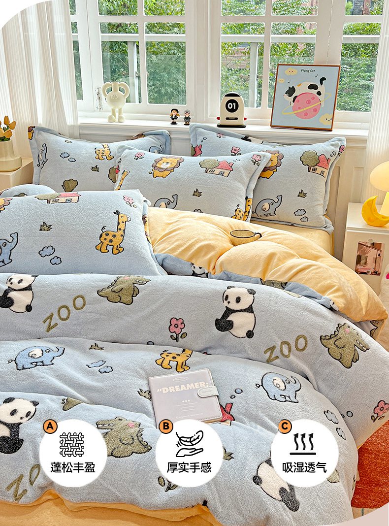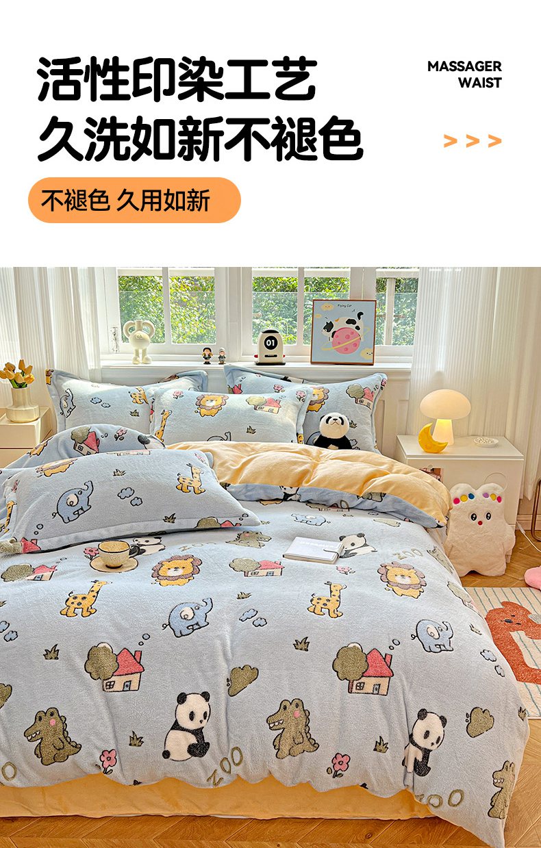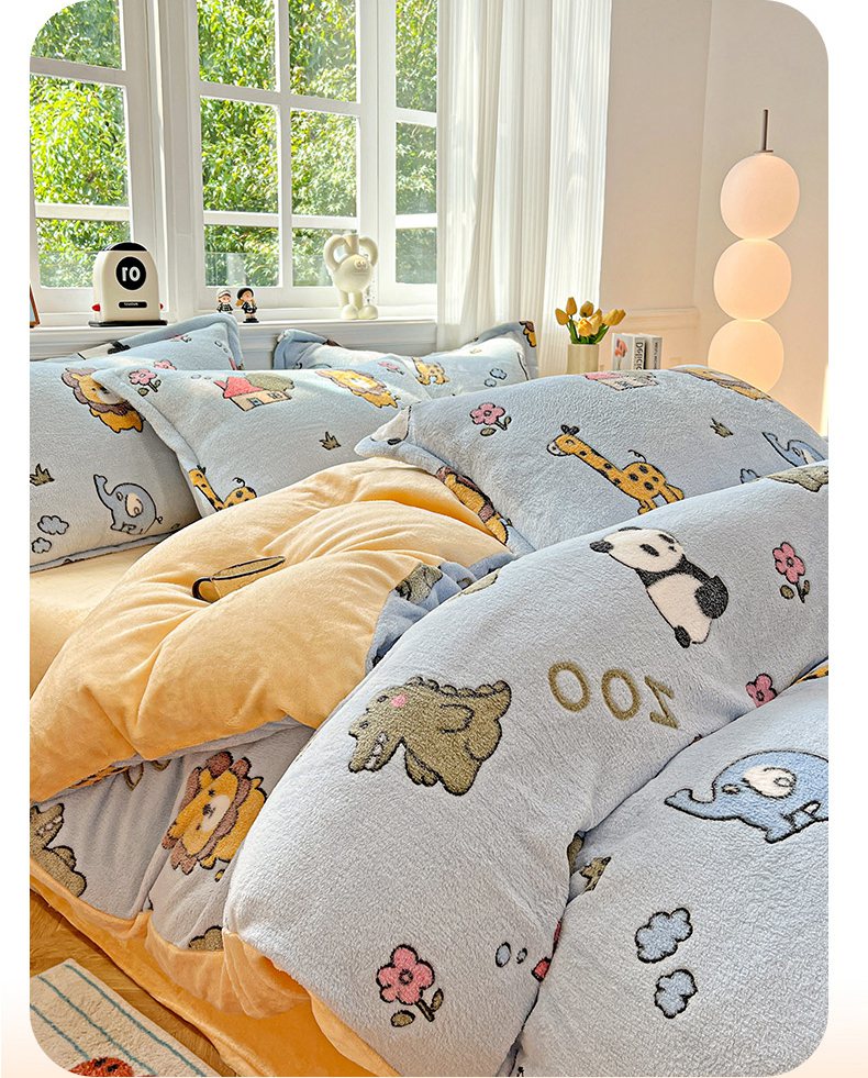 当前位置: 91家纺网 > 商品网购 > 床品套件 > 四件套 > 牛奶绒四件套 > 韩巢家纺 2025新款高克重雪花绒牛奶绒四件套 动物世界