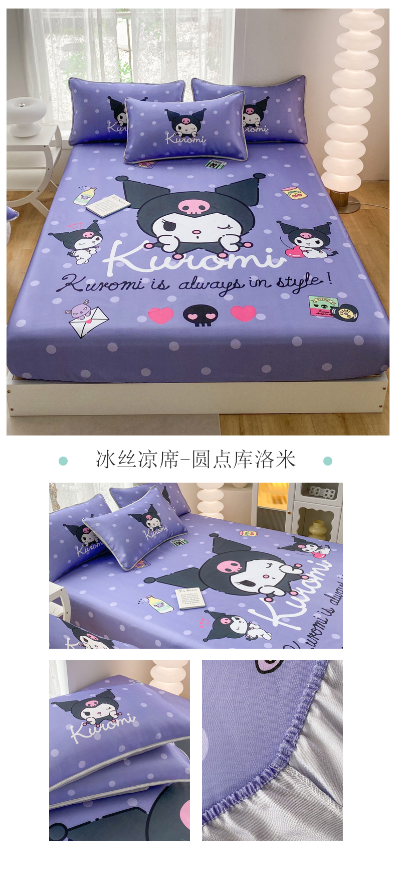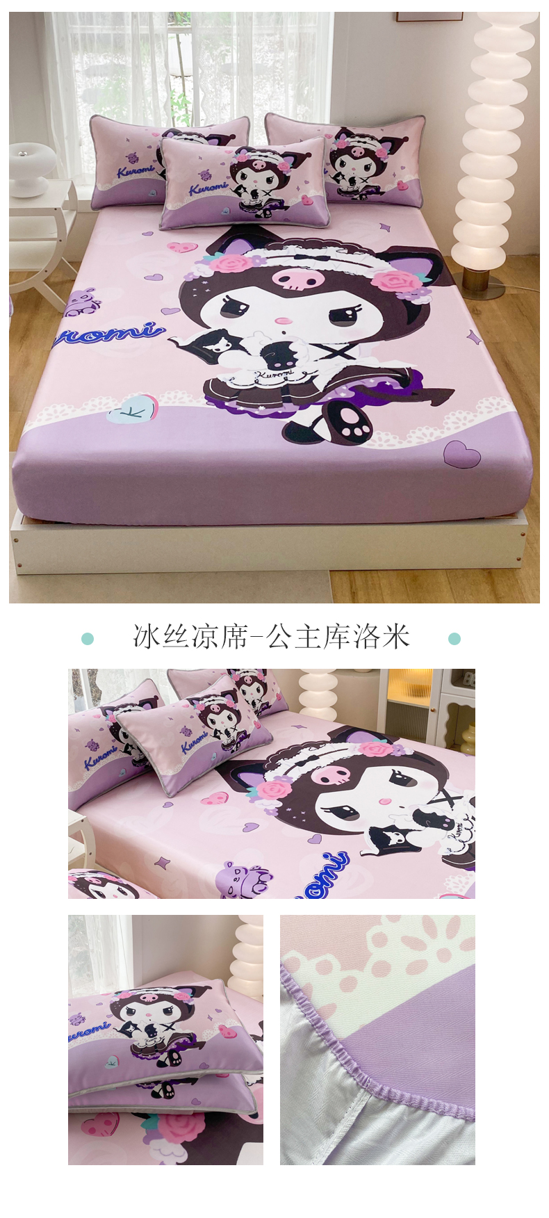 商品名称:(总)一电 2025新款跨境电商外贸夏季卡通冰丝凉席床笠可水洗学生宿舍单人空调席子