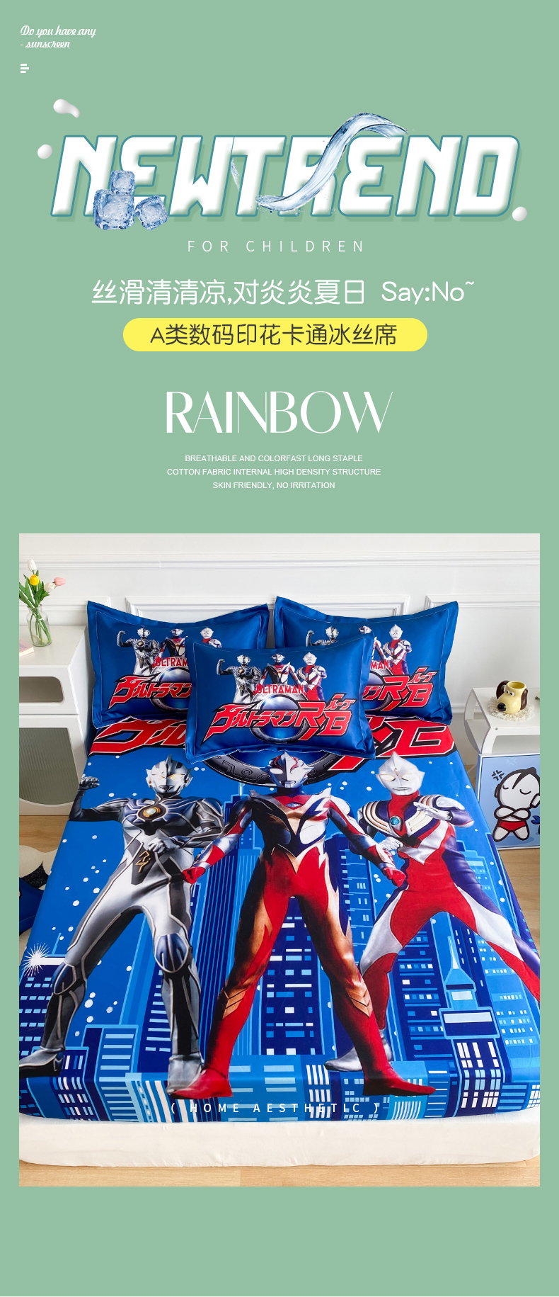 (总)一电 2025新款跨境电商外贸夏季卡通冰丝凉席床笠可水洗学生宿舍单人空调席子