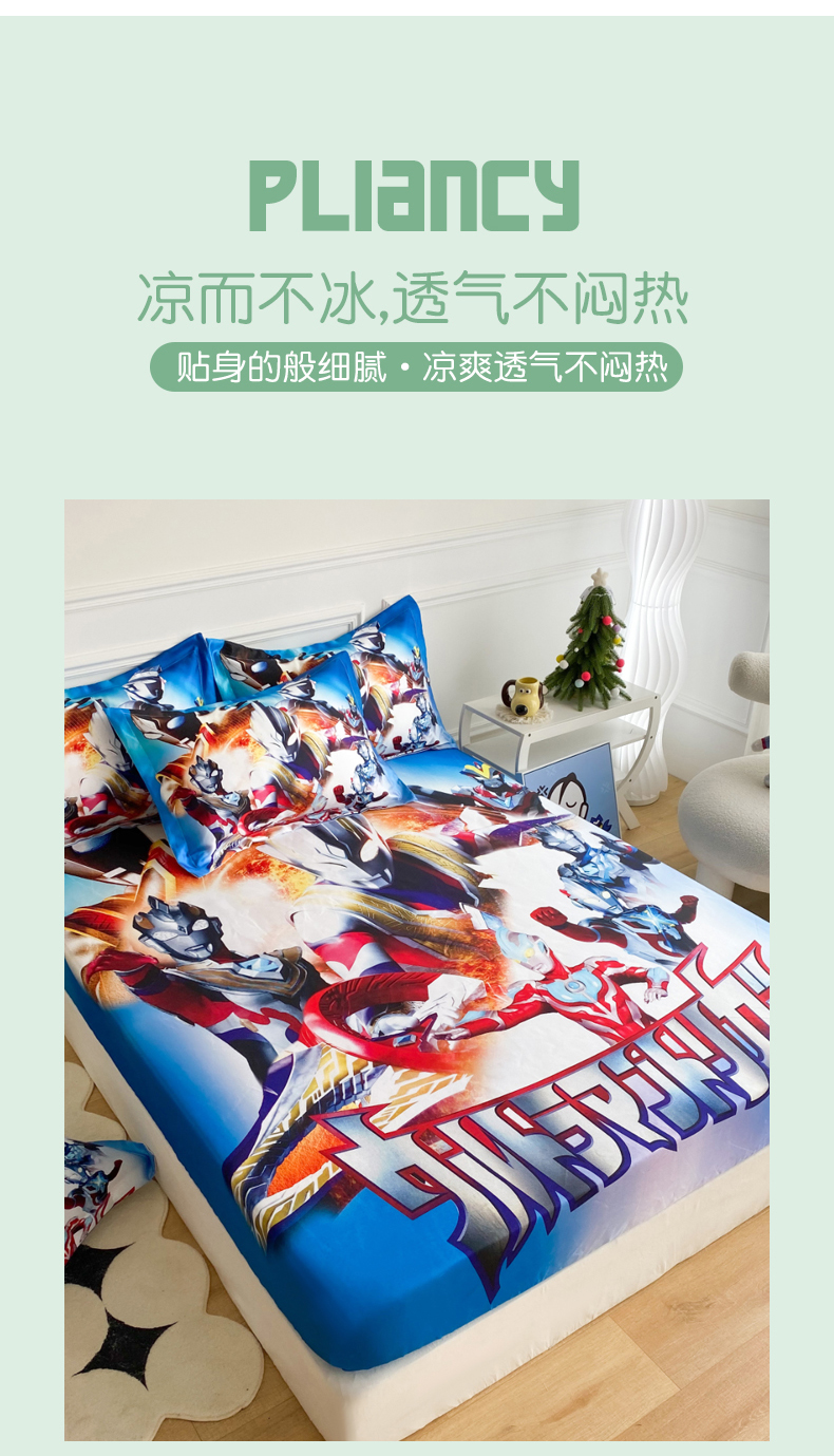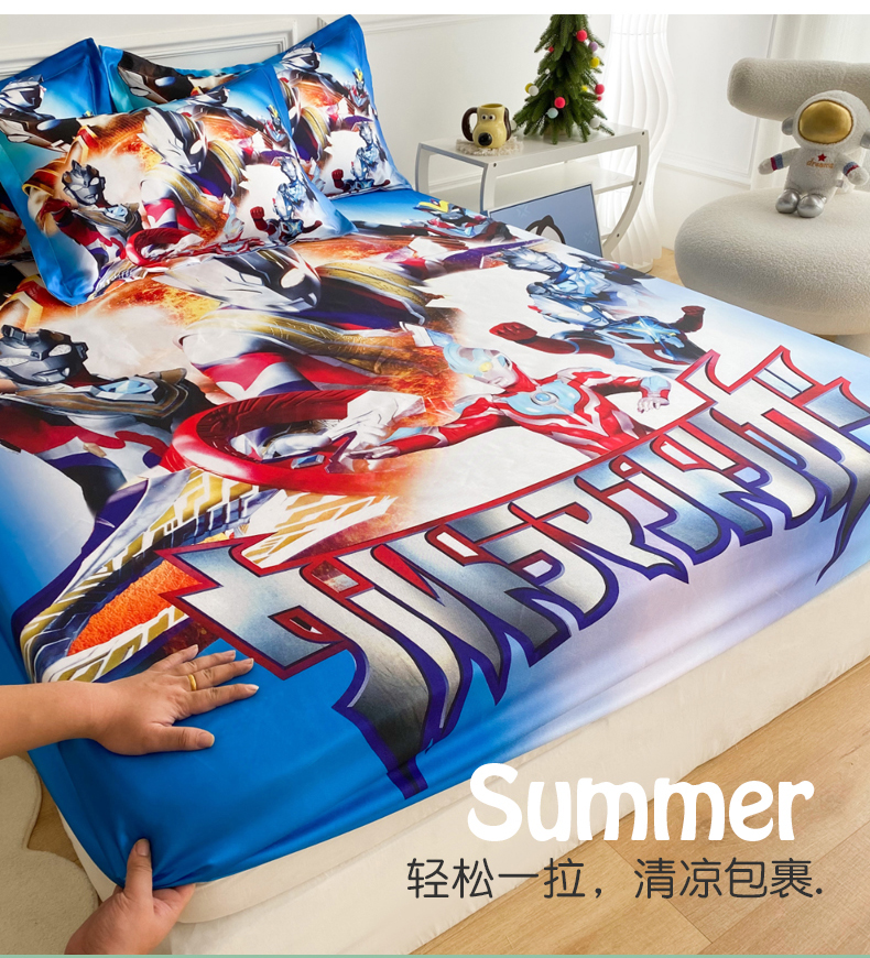 • 91家纺网 家纺一手货源 找家纺 一电 2025新款跨境电商外贸夏季卡通冰丝凉席床笠可水洗学生宿舍单人空调席子 闪电奥特曼