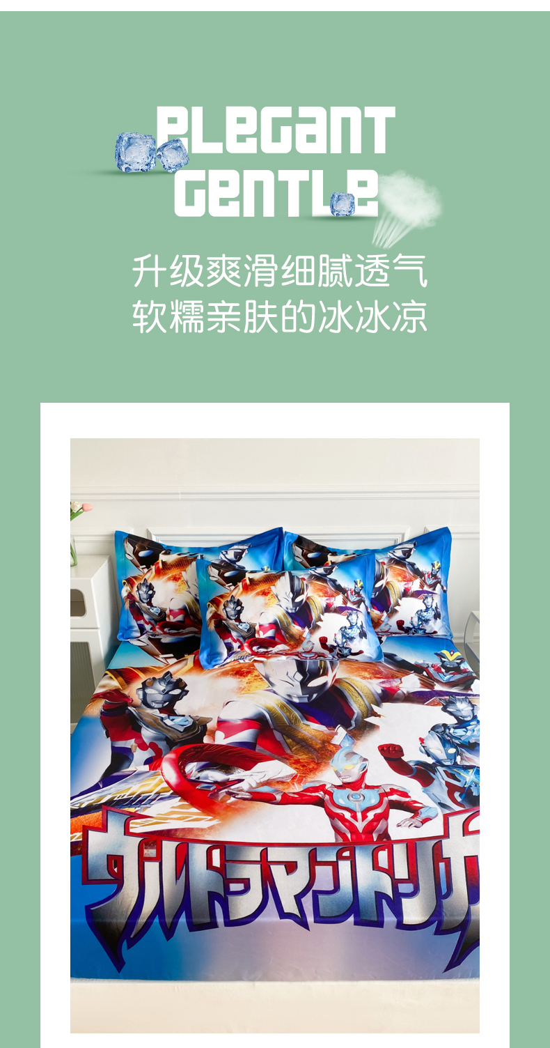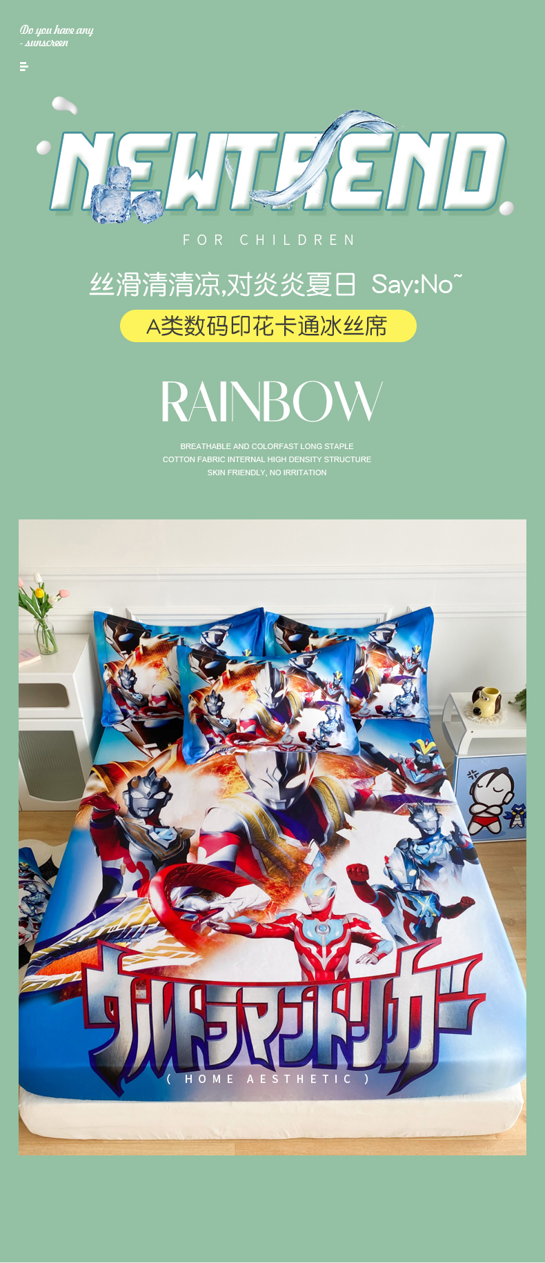 一电 2025新款跨境电商外贸夏季卡通冰丝凉席床笠可水洗学生宿舍单人空调席子 闪电奥特曼