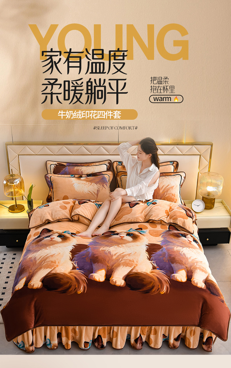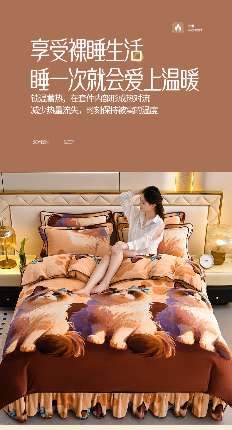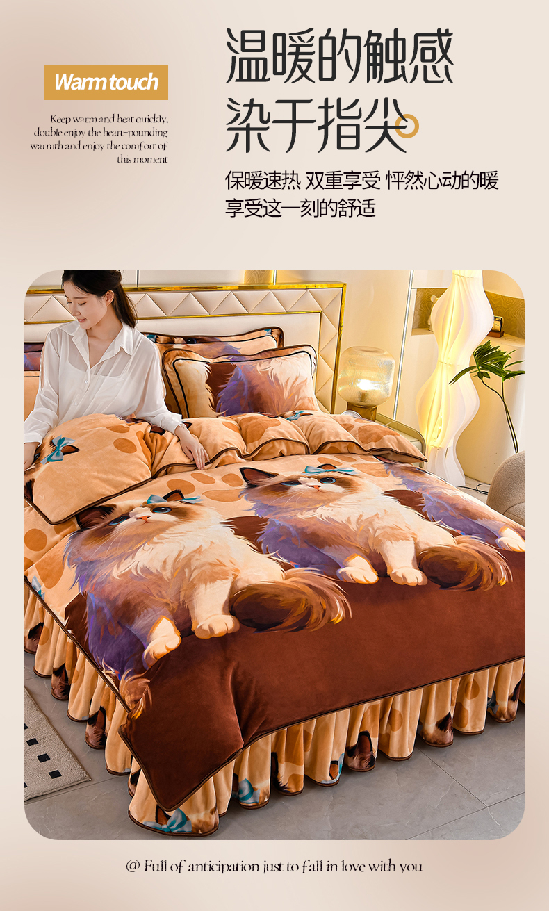 缘莉娜家纺 2025高克重8斤牛奶绒四件套金貂绒法莱绒加厚保暖直播电商爆款 布偶喵