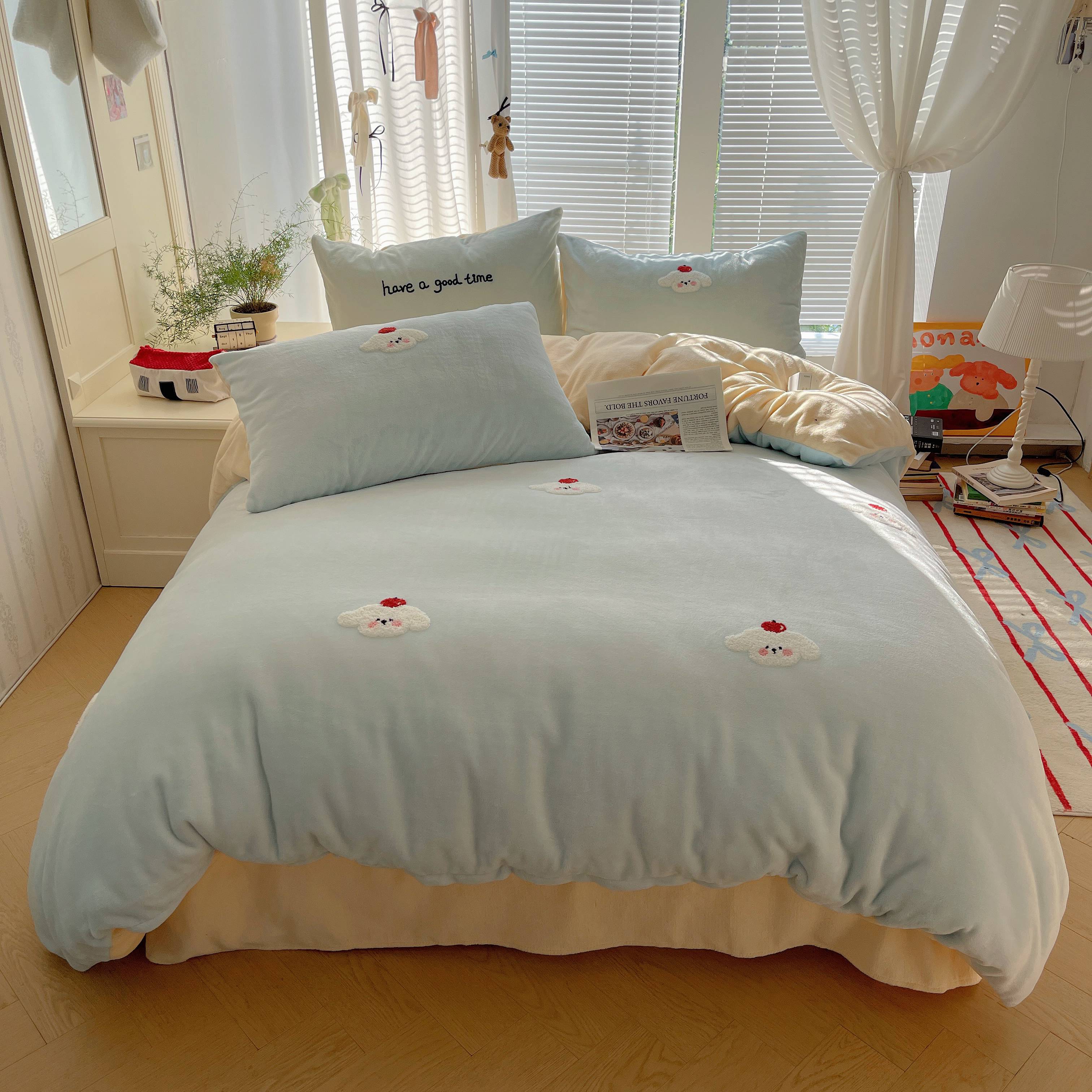 当前位置: 91家纺网 > 商品网购 > 床品套件 > 四件套 > 牛奶绒四件套 > 顾里家纺 2025秋冬新款童趣毛巾绣印花牛奶绒四件套 爱心花猫