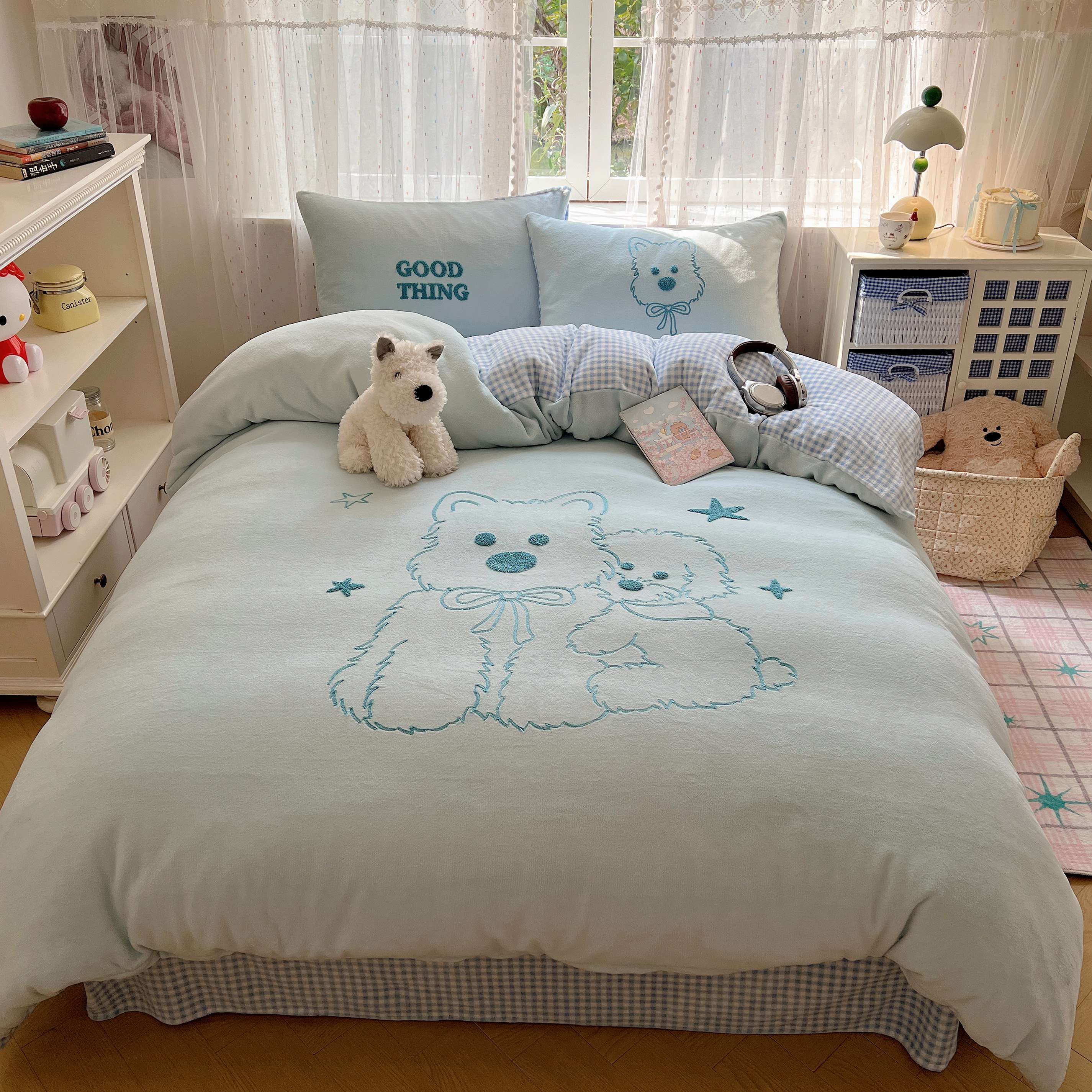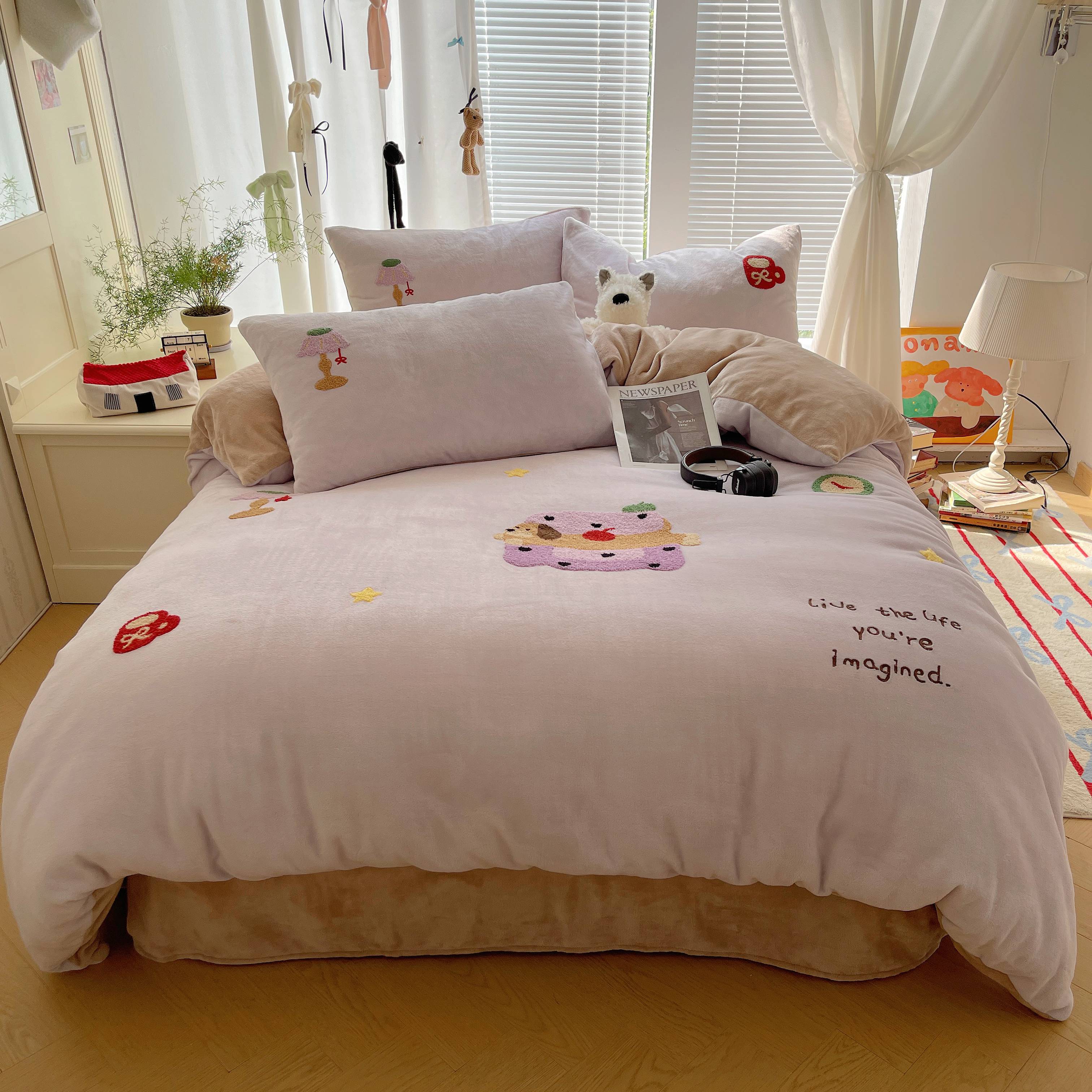 当前位置: 91家纺网 > 商品网购 > 床品套件 > 四件套 > 牛奶绒四件套 > 顾里家纺 2025秋冬新款童趣毛巾绣印花牛奶绒四件套 甜品狗狗