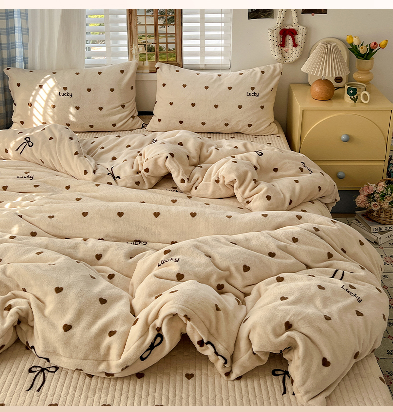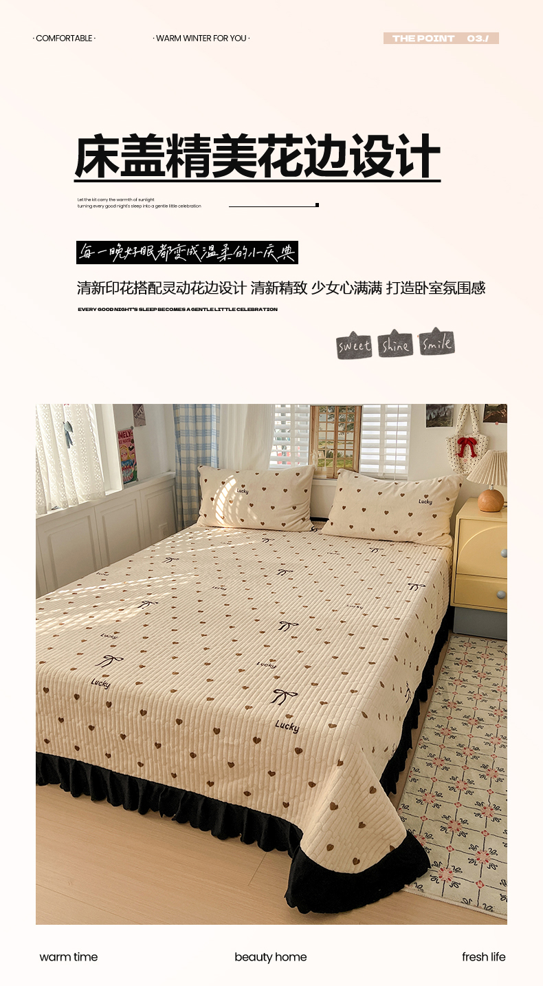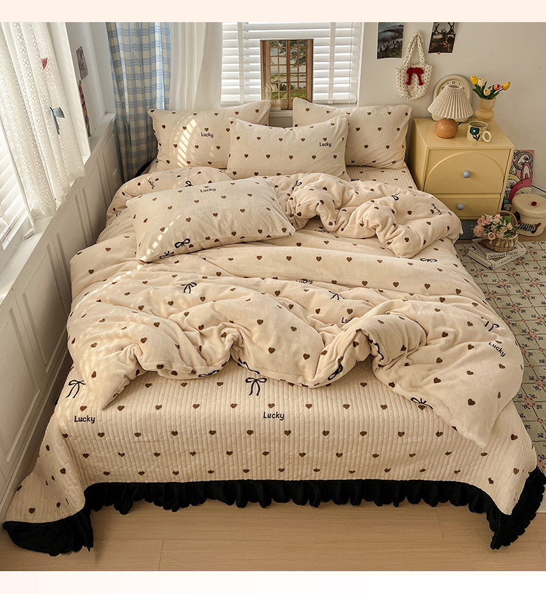 当前位置: 91家纺网 > 商品网购 > 床品套件 > 四件套 > 其它四件套 > 逸林家纺《原希尔顿逸林》 2025新款牛奶绒床盖四件套加厚印花法式赫本风花边床盖四件套 床盖款-爱心蝴蝶结