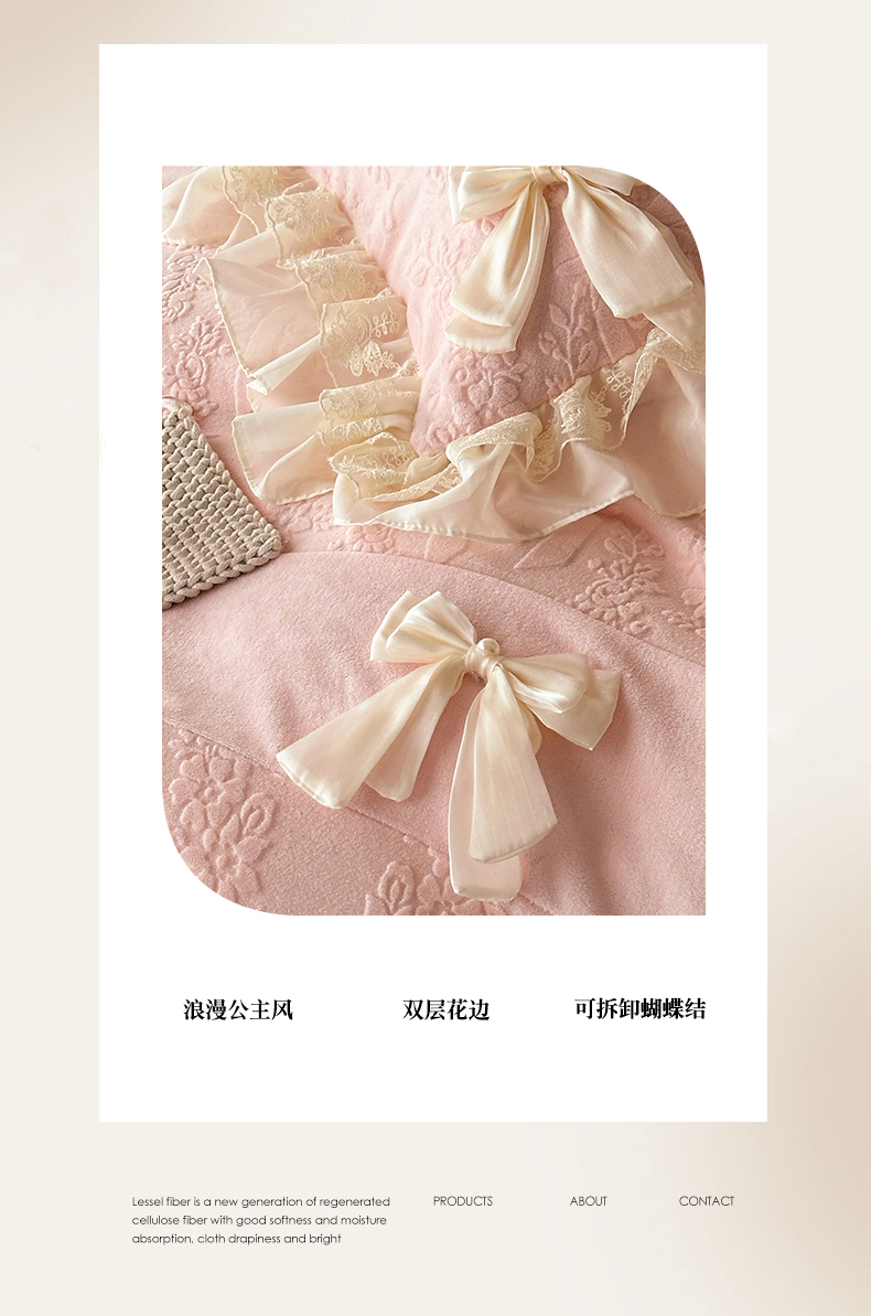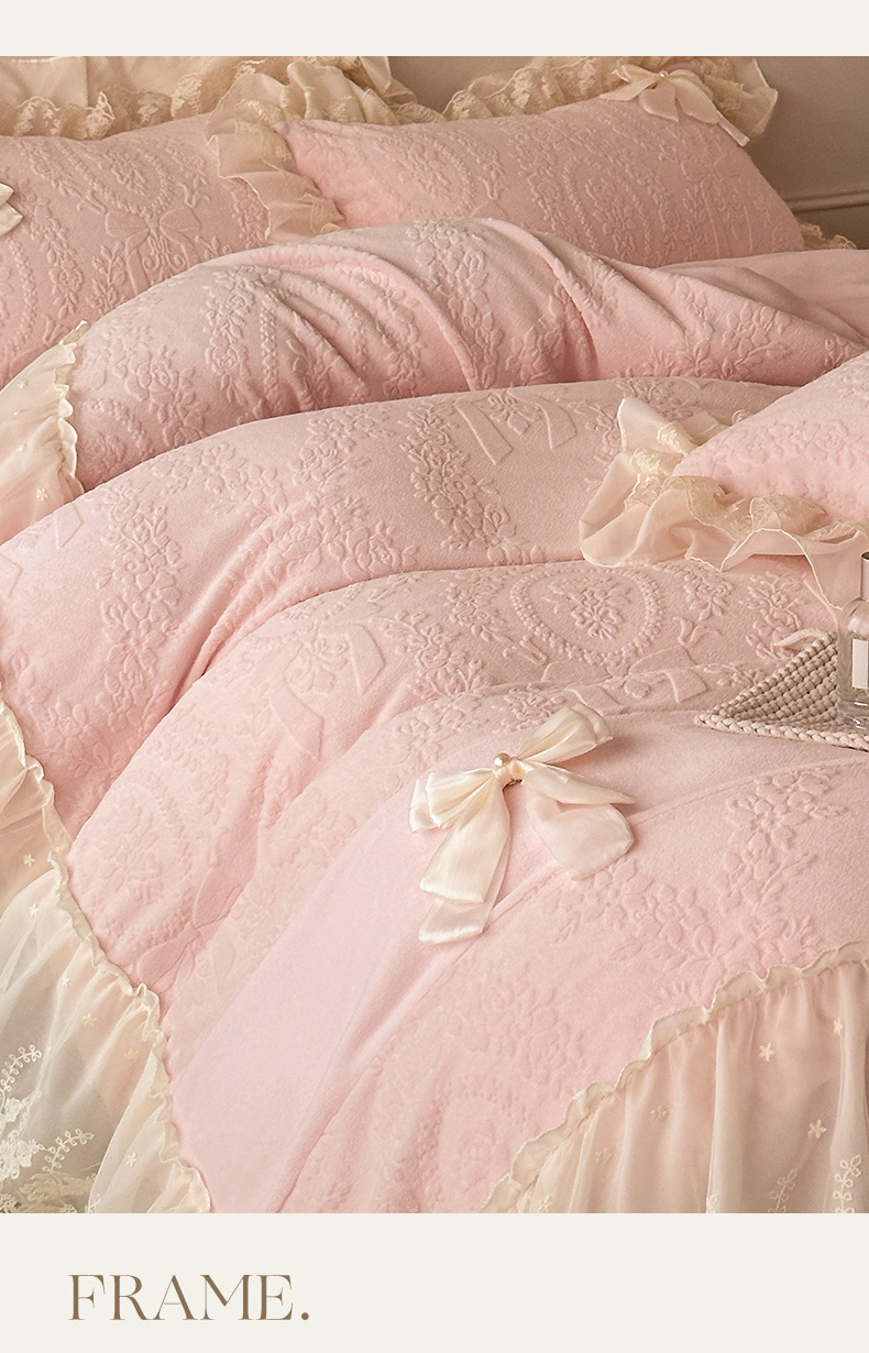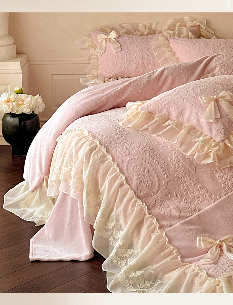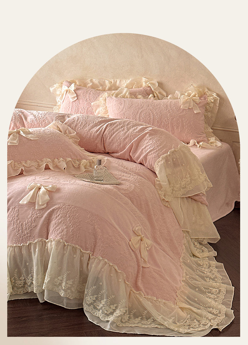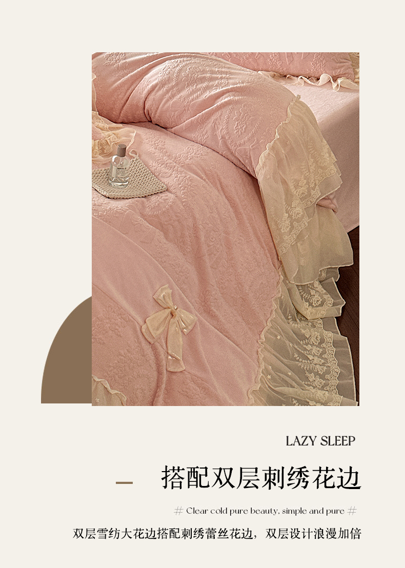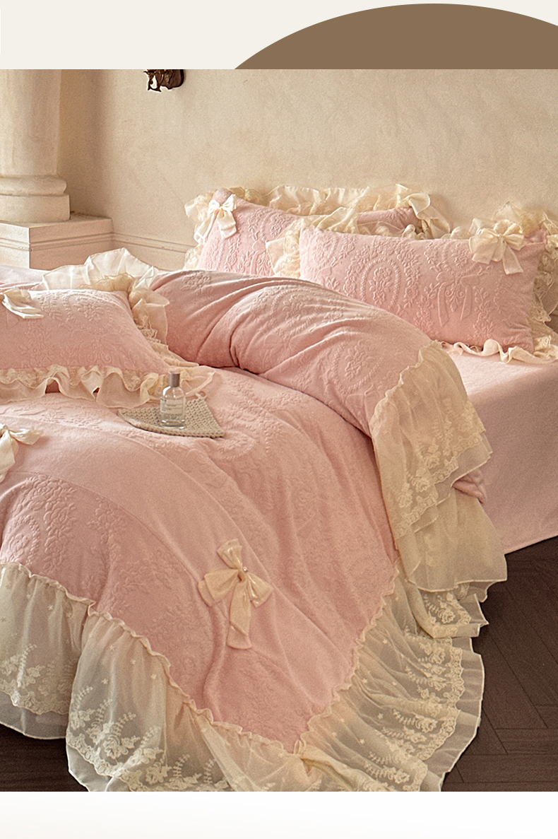 当前位置: 91家纺网 > 商品网购 > 床品套件 > 四件套 > 牛奶绒四件套 > 你好美丽 2025新款雕花牛奶绒刺绣花边蝴蝶结四件套-黛玉系列 黛玉粉