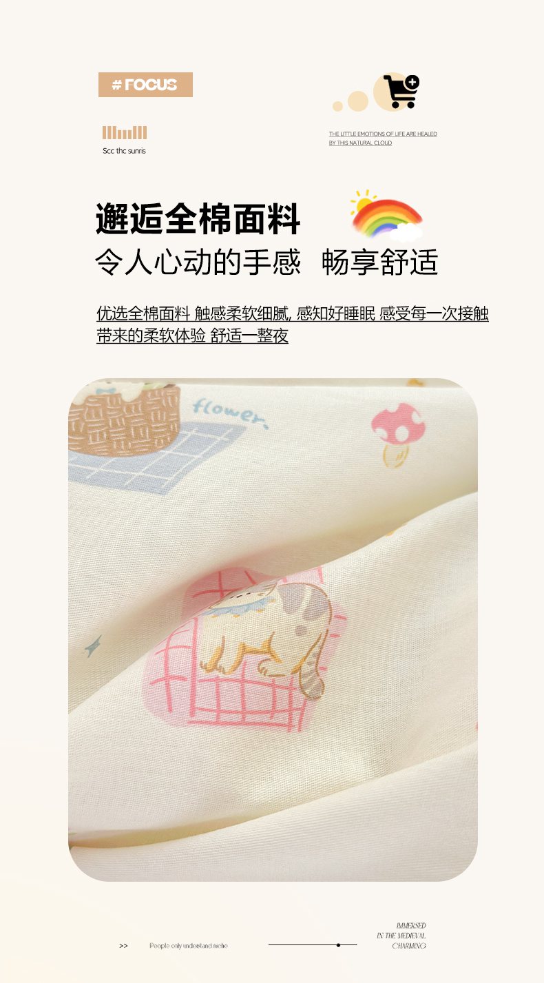 (总)清雅福 2026春夏新款INS小清新40支全棉13372单被套第一批,棒棒糖女孩,春之约定,点点小狗,动物聚会,豆丁小熊,粉心狗,富贵狗,果子象,含羞草,假日小狗