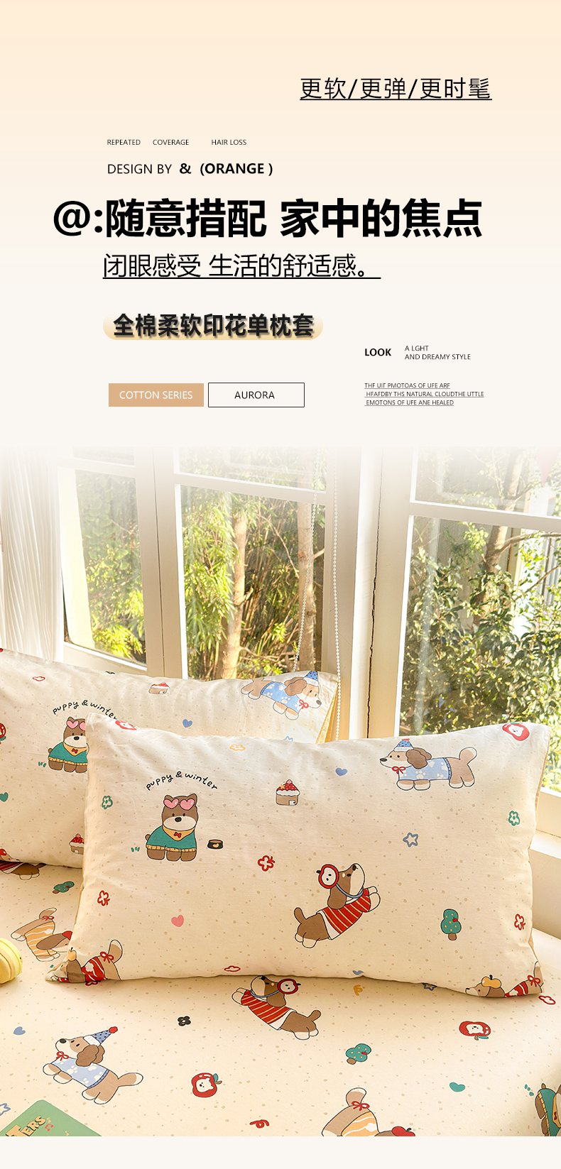 商品名称:清雅福 2025新款全棉柔软印花单枕套系列 汪星卧室