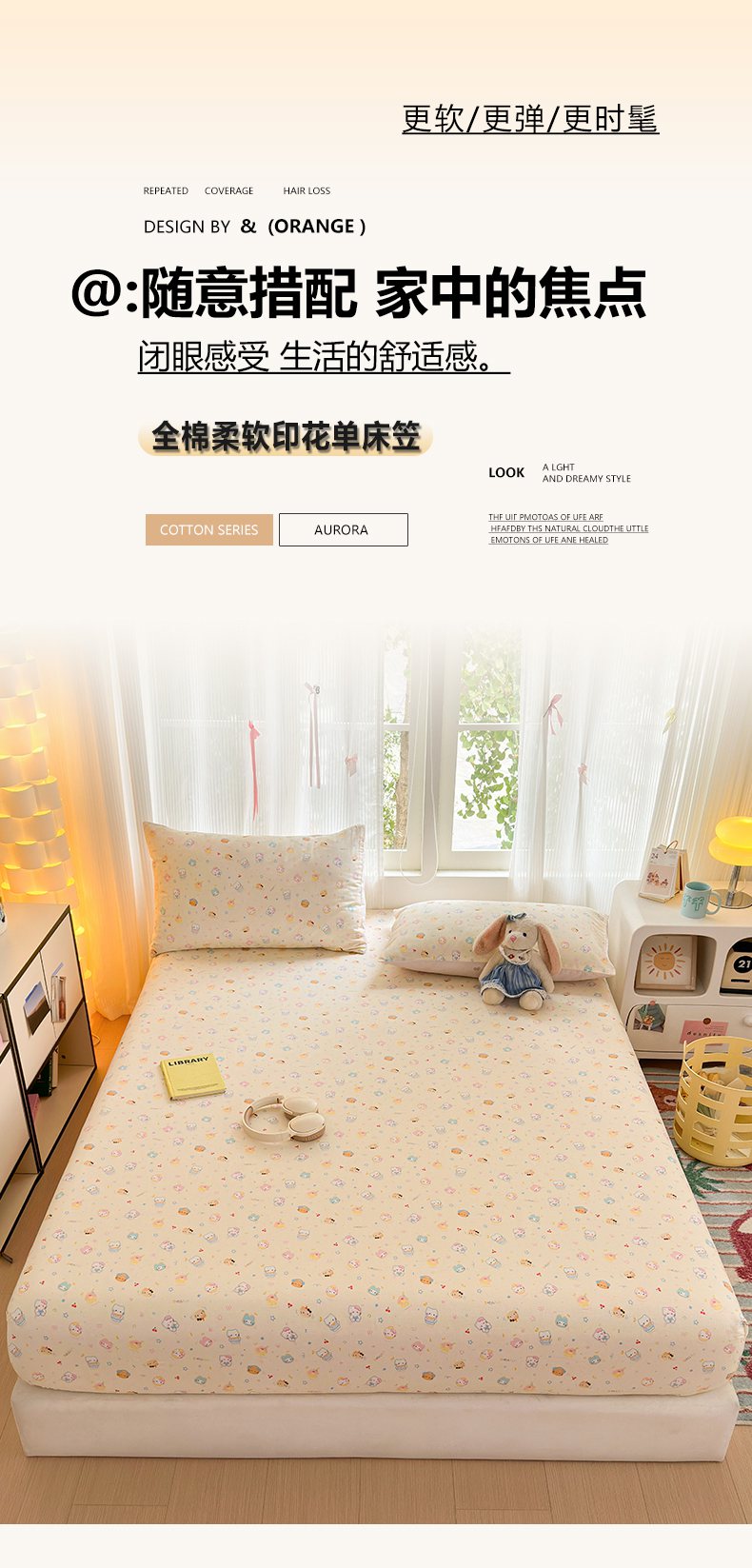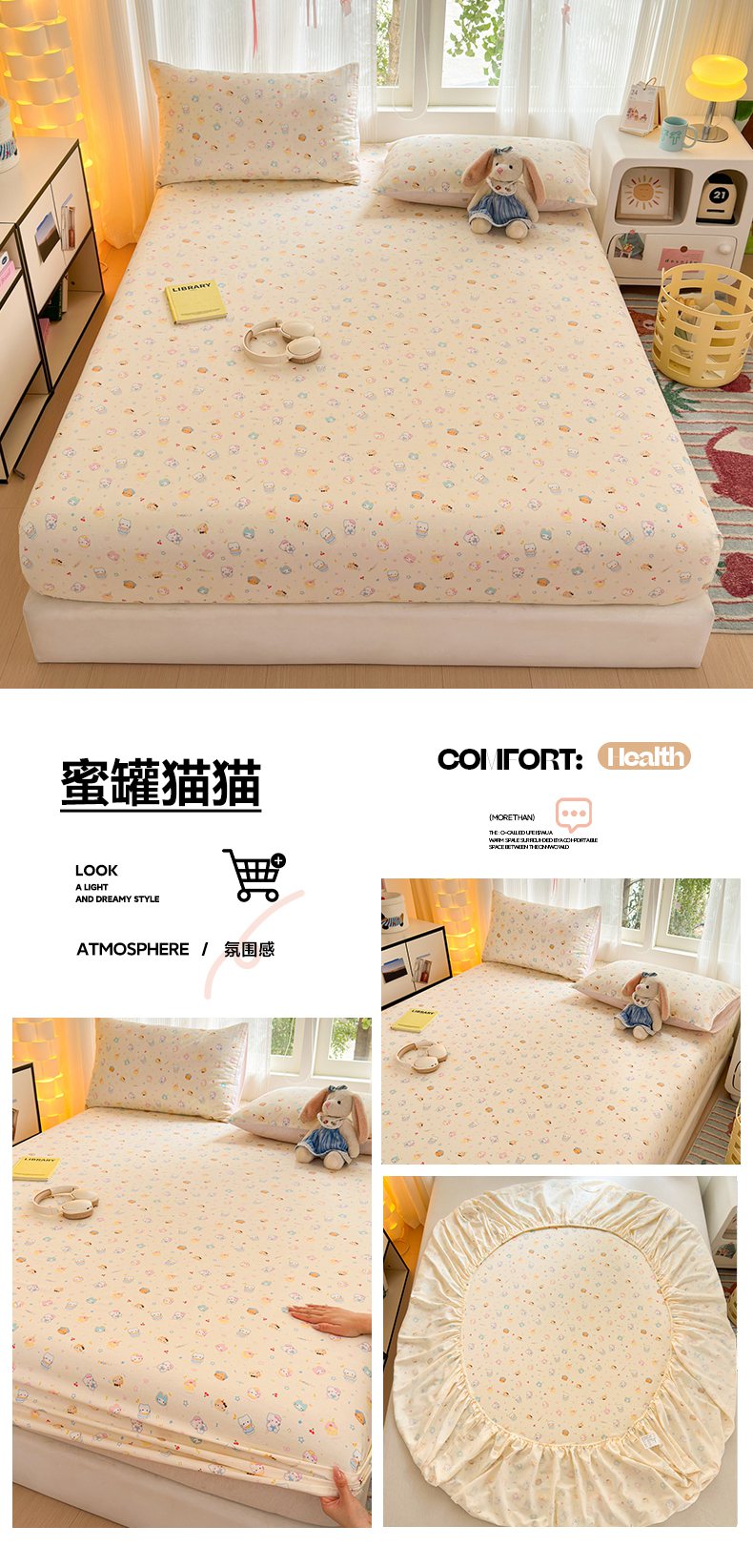 清雅福 2025新款全棉柔软印花系列单床笠 蜜罐猫猫
