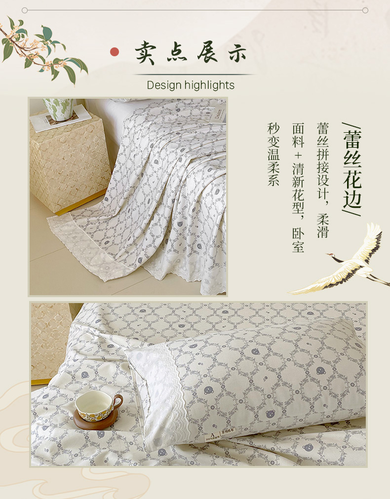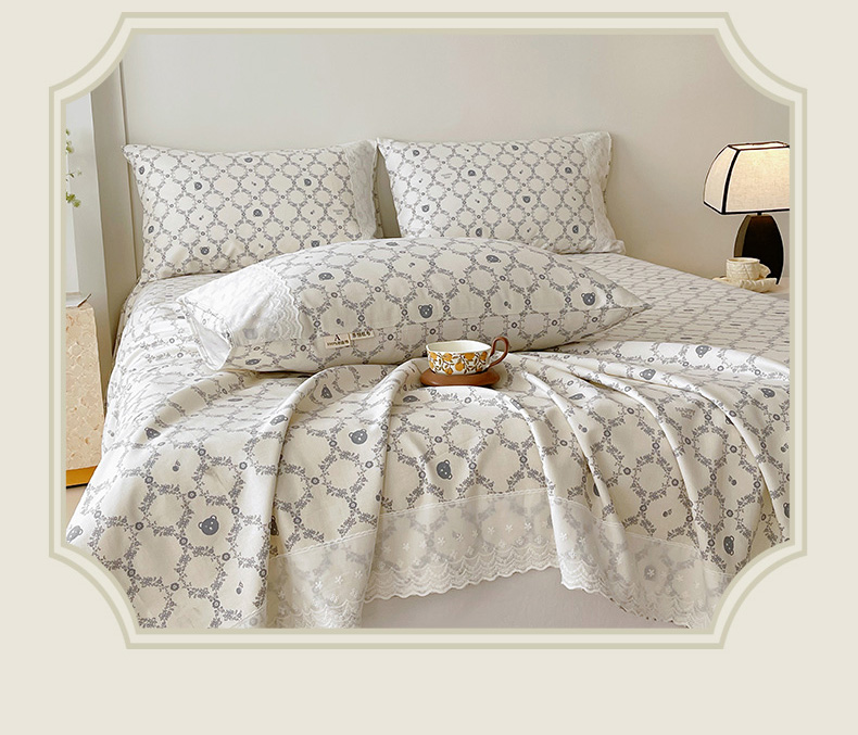 • 91家纺网 家纺一手货源 找家纺 春皖家纺 2026春夏新款老粗布花边款凉席席子单床单 床单单件 花边-米娅