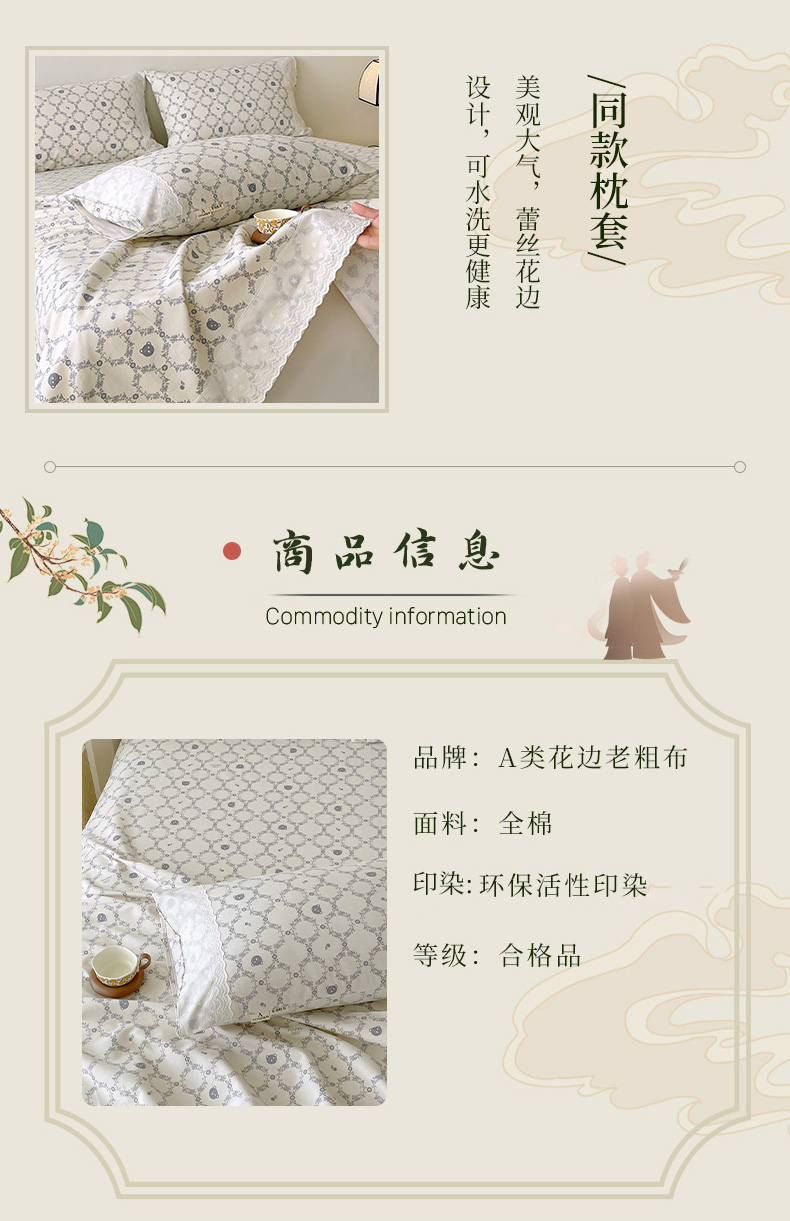 当前位置: 91家纺网 > 商品网购 > 床上用品 > 床单 > 春皖家纺 2026春夏新款老粗布花边款凉席席子单床单 床单单件 花边-米娅
