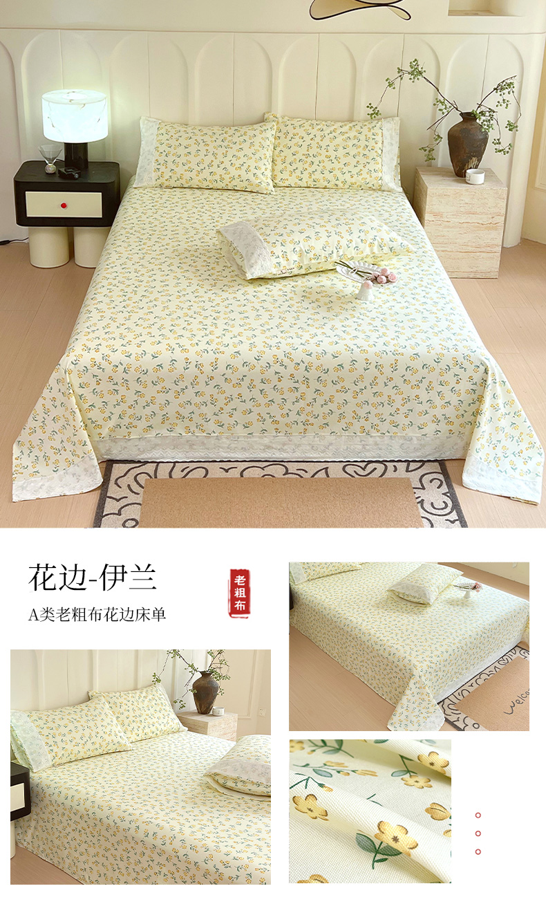 (总)春皖家纺 2026春夏新款老粗布花边款凉席席子单床单 床单单件,花边-翠林音,花边-细川聚,花边-田园梦,花边-塞西,花边-琴南,花边-倩影米,花边-米娅,花边-莱昂,花边-香颂,花边-伊兰