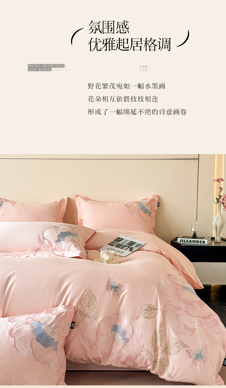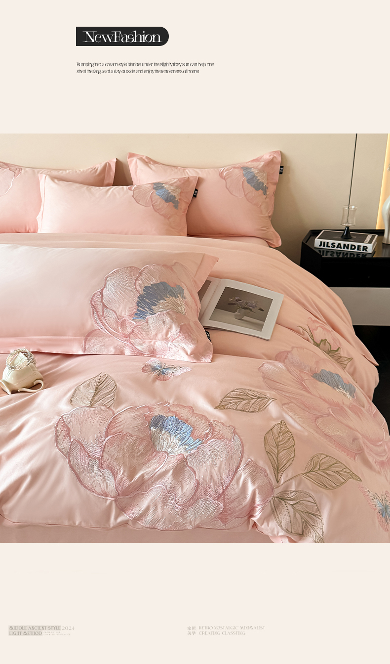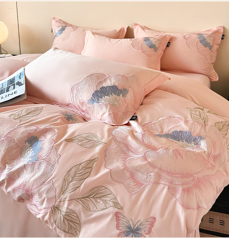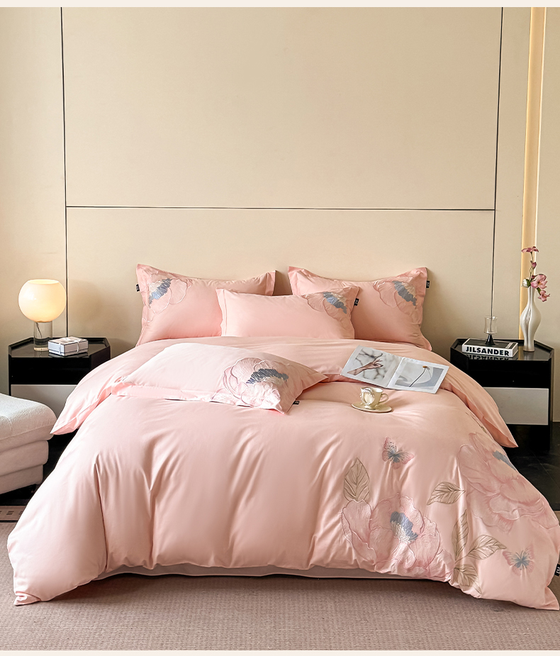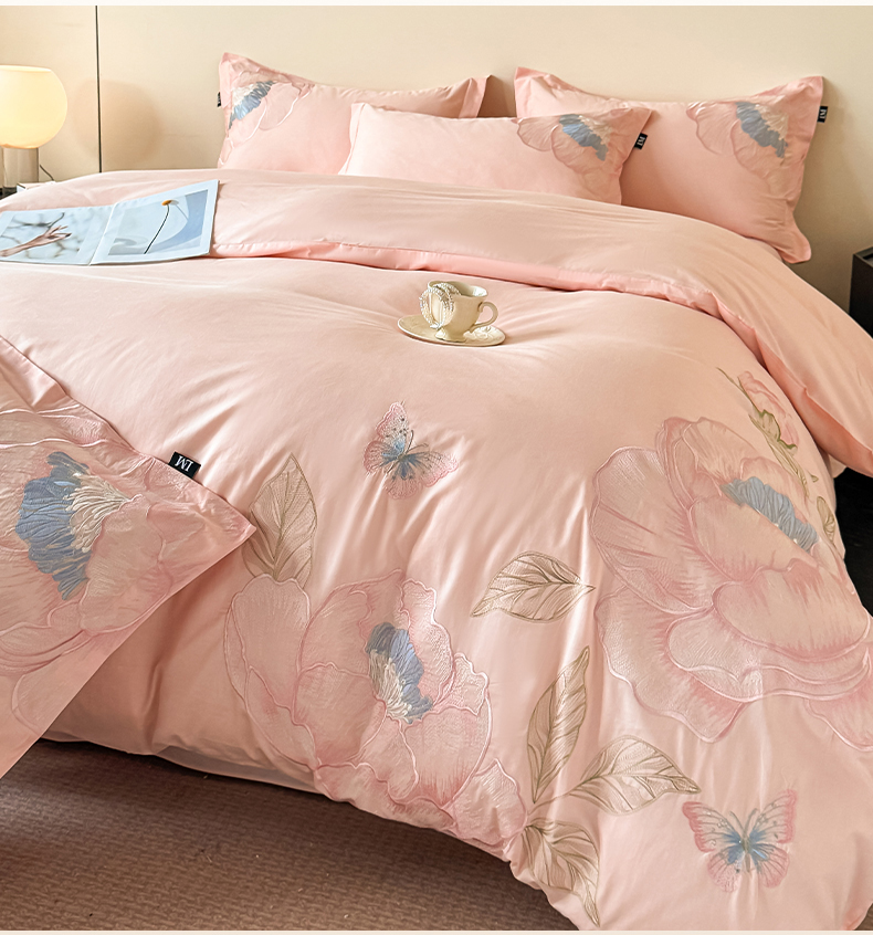 (总)乐美家纺 2026新款春夏新品全棉刺绣悦璟系列四件套,悦璟(丁香紫),悦璟(微微粉)