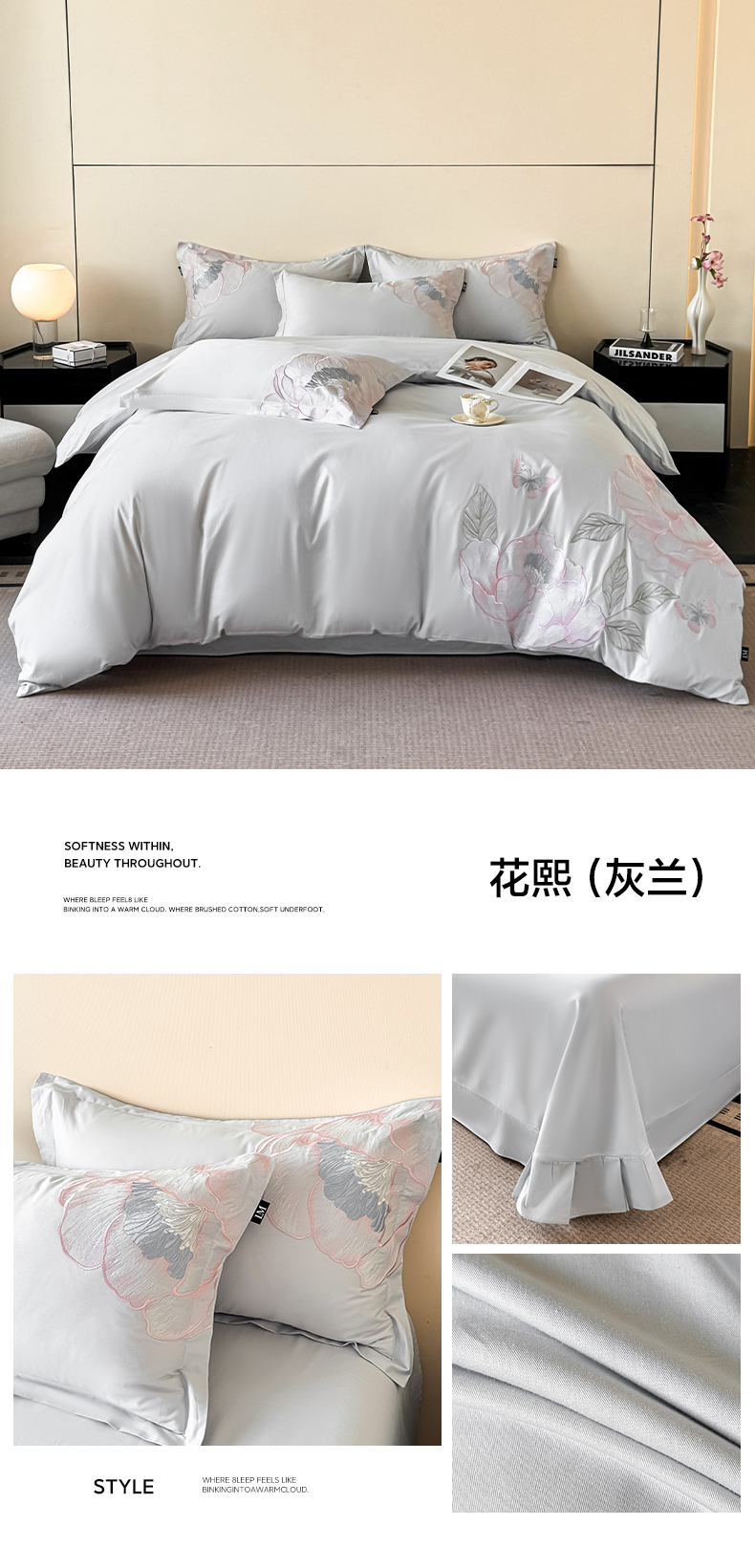 (总)乐美家纺 2026年春夏新品全棉刺绣花至系列四件套,花至(丁香紫),花至(芝士黄)