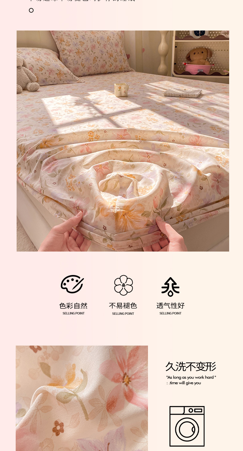 • 91家纺网 家纺一手货源 找家纺 花梦欣 2026新款全棉印花单品系列2花卉款-单床笠 苏糖粉