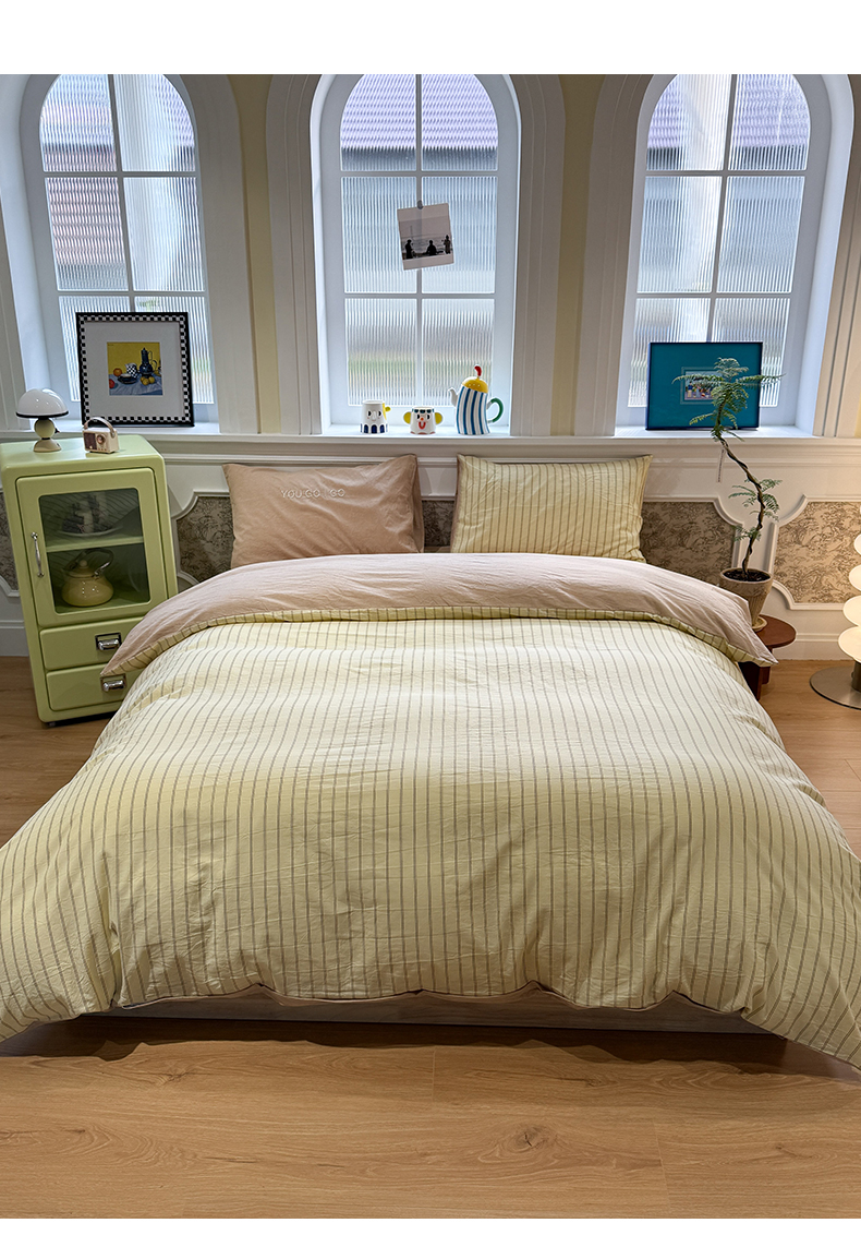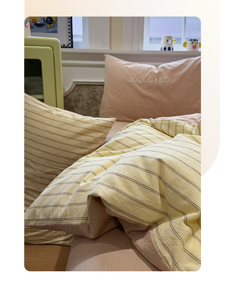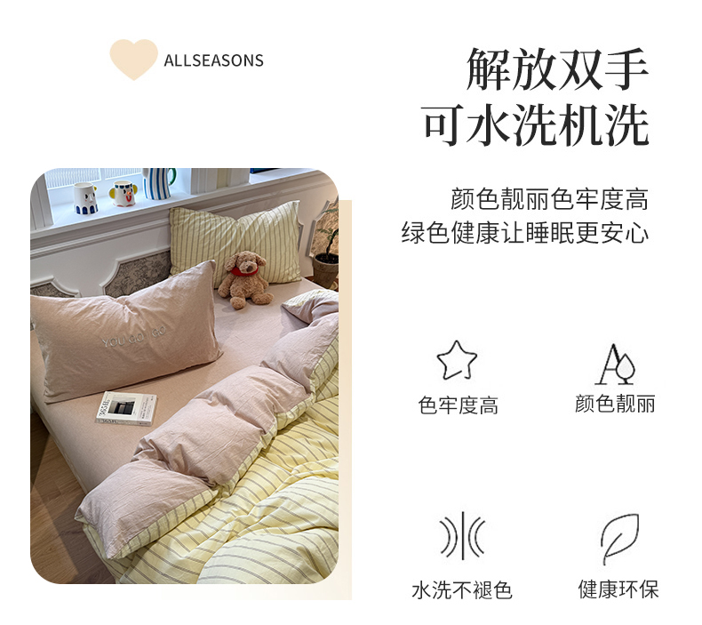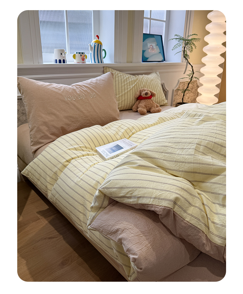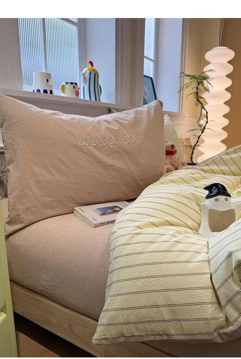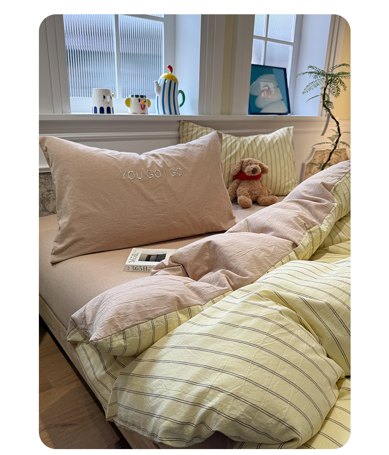 当前位置: 91家纺网 > 商品网购 > 床品套件 > 四件套 > 全棉普通四件套 > 曼町家居 2026春夏新款全棉纯棉色织水洗棉字母刺绣四件套 浅夏