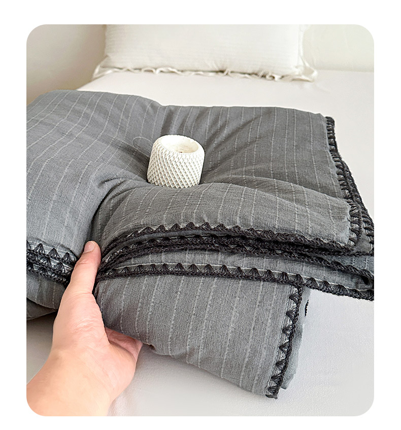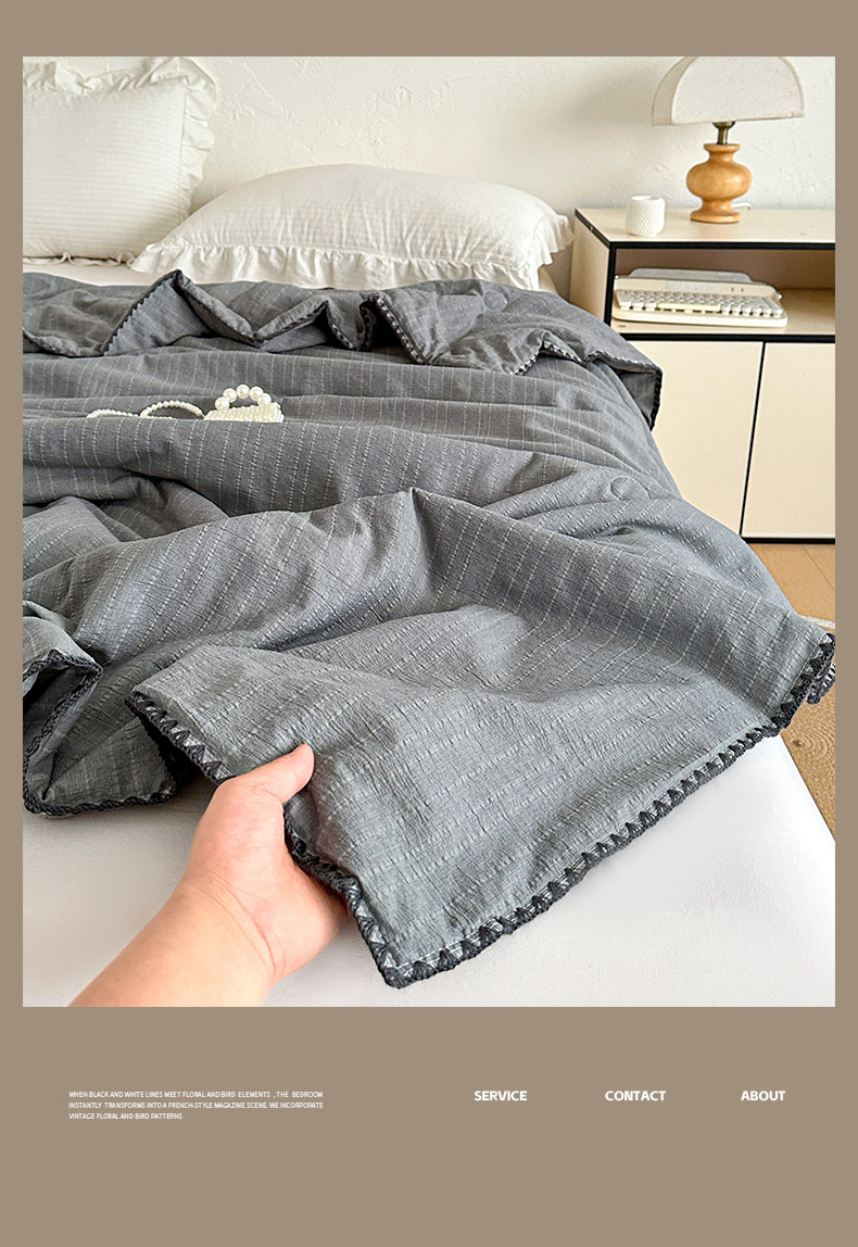被子 > 夏被 > 鑫利来家纺 2026新款纯色无印风夏被简约素色法式麻夏凉被阳离子色织提花单人双人学生夏凉被 青禾-深灰