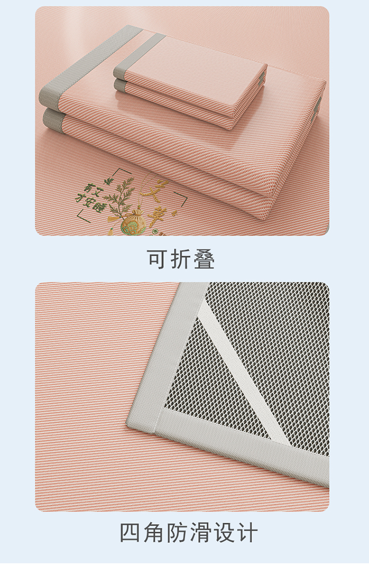 当前位置: 91家纺网 > 商品网购 > 床上用品 > 凉席 > 凉席套件 > 奇丝雅 2026新款夏季A类艾草碳光凉席三明治冰丝凉席家用冰丝席可机洗学生宿舍上下铺空调软席三件套-大床 艾草-粉(三明治网底)