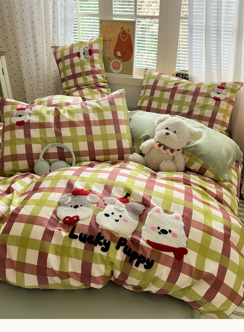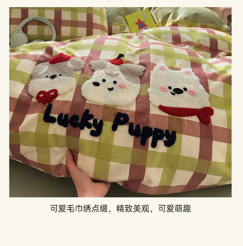 商品名称:曼之夏 2026新款50支长绒棉毛巾绣四件套 幸运小狗