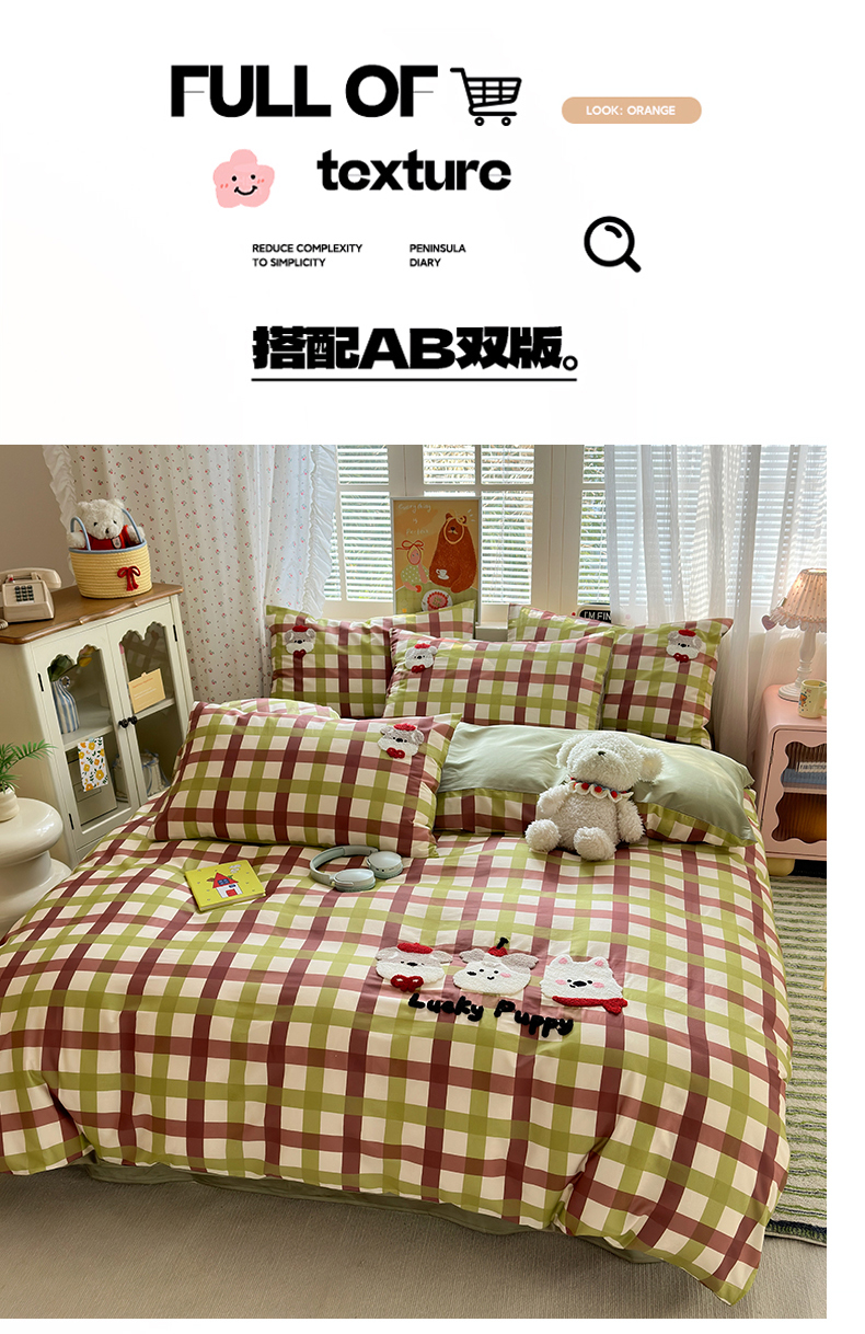 (总)曼之夏 2025新款全棉拼色纯色宿舍学生三件套,高级灰+浅驼,兰灰+浅驼,蓝格,米白+草绿,米白+浅驼,米灰+高级灰,浅绿+米灰,水兰+米灰,杏黄+草绿