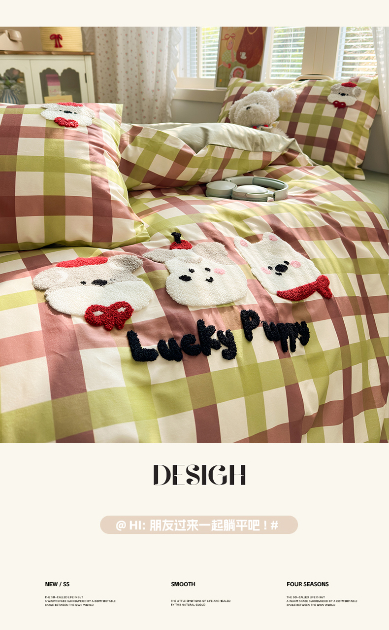 (总)曼之夏 2025新款全棉纯棉印花四件套,豹纹猫咪,笨笨象,缤纷乐园,草莓蛋糕,丛间密语,点点小腊肠,冬日可可狗,告白熊,格子小狗,快乐熊猫,萌萌哒,蜜糖,苹果熊仔,奇思妙想,圣诞星语,兔兔甜心,线团小猫,小熊序曲,心动狗狗,心心狗,星星凯蒂猫,幸运猪猪