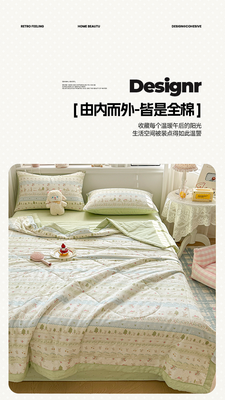 • 91家纺网 家纺一手货源 找家纺 棉森家纺 2026春夏新款全棉纯棉棉花夏被夏凉被空调被-风格三 森林小兔