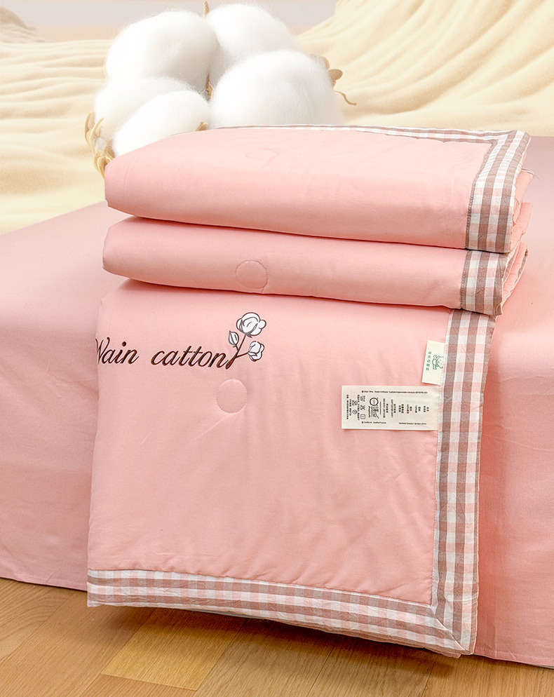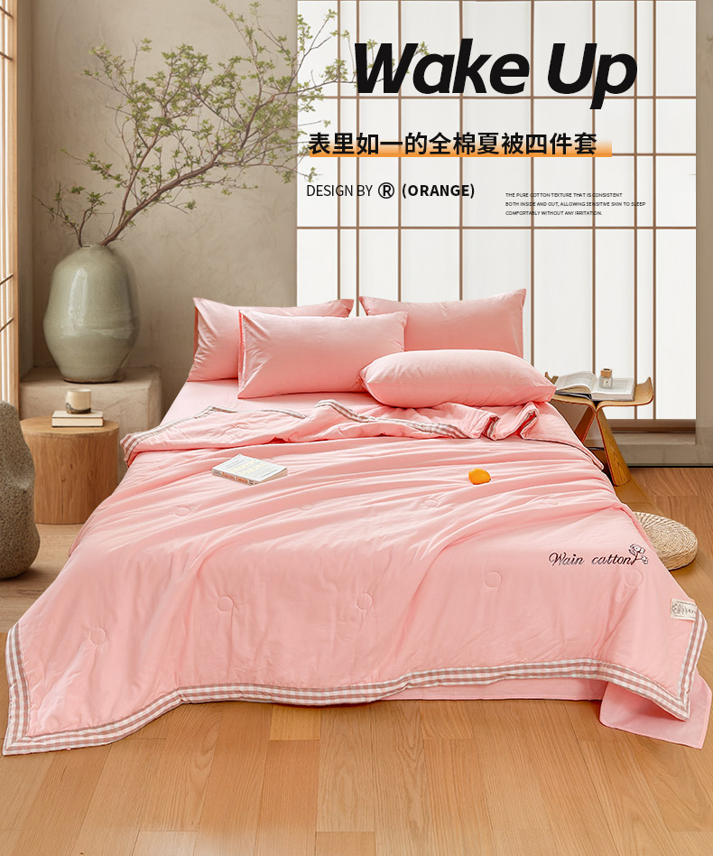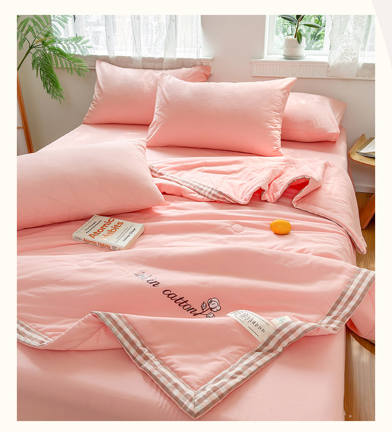 • 91家纺网 家纺一手货源 找家纺 雯雨家纺 2026新款全棉水洗棉棉花夏凉被-简森系列 简森-文艺粉
