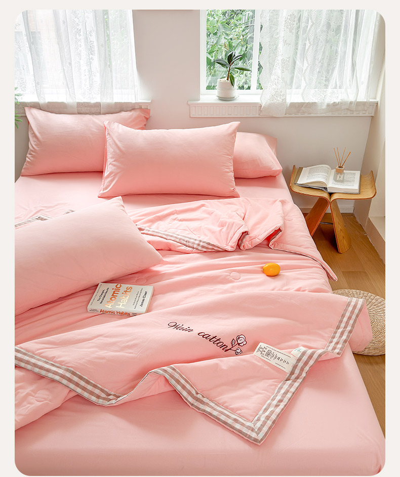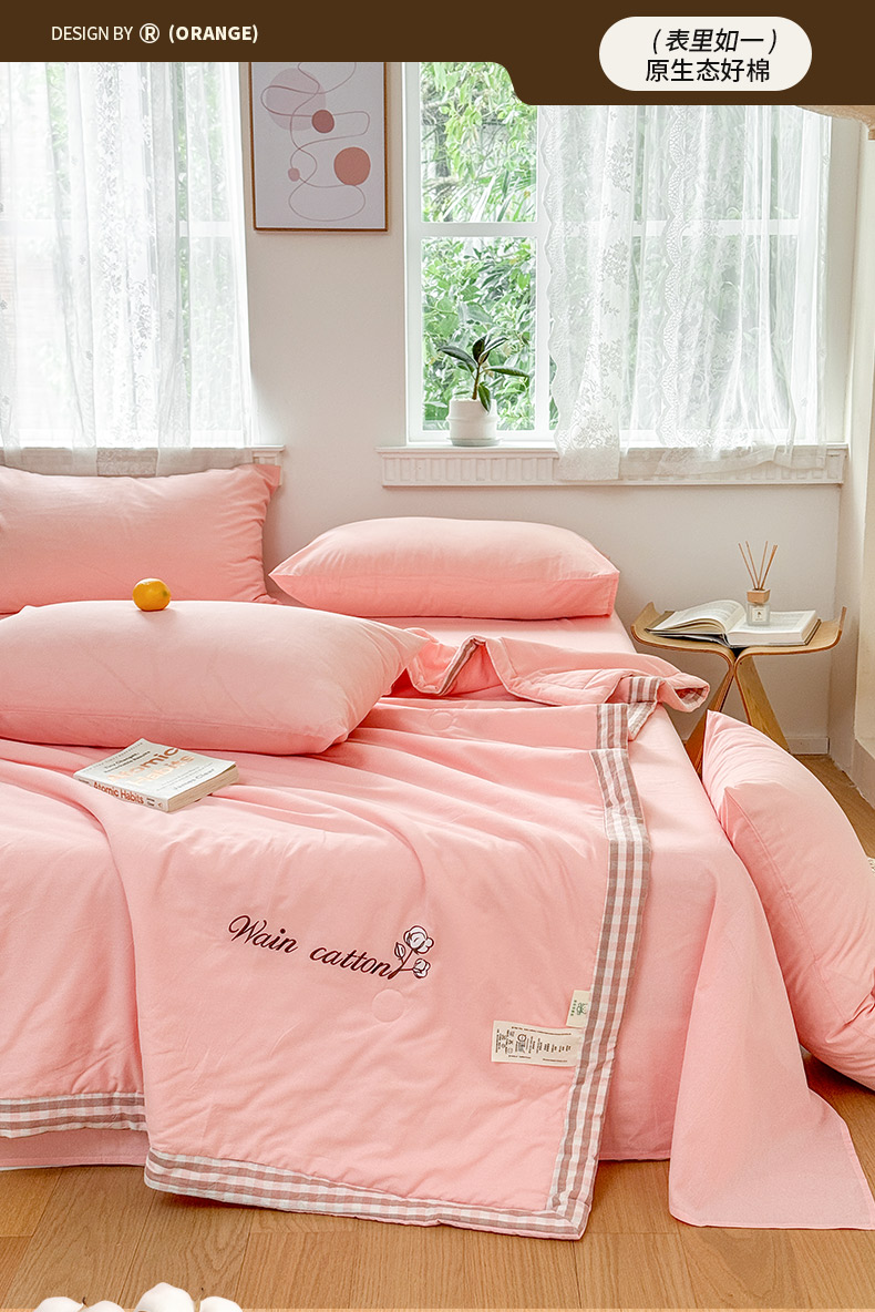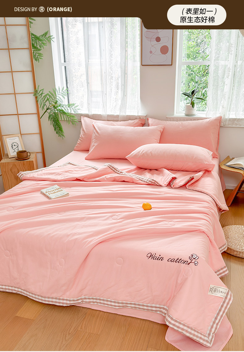 雯雨家纺 2026新款全棉水洗棉棉花夏凉被-简森系列 简森-文艺粉