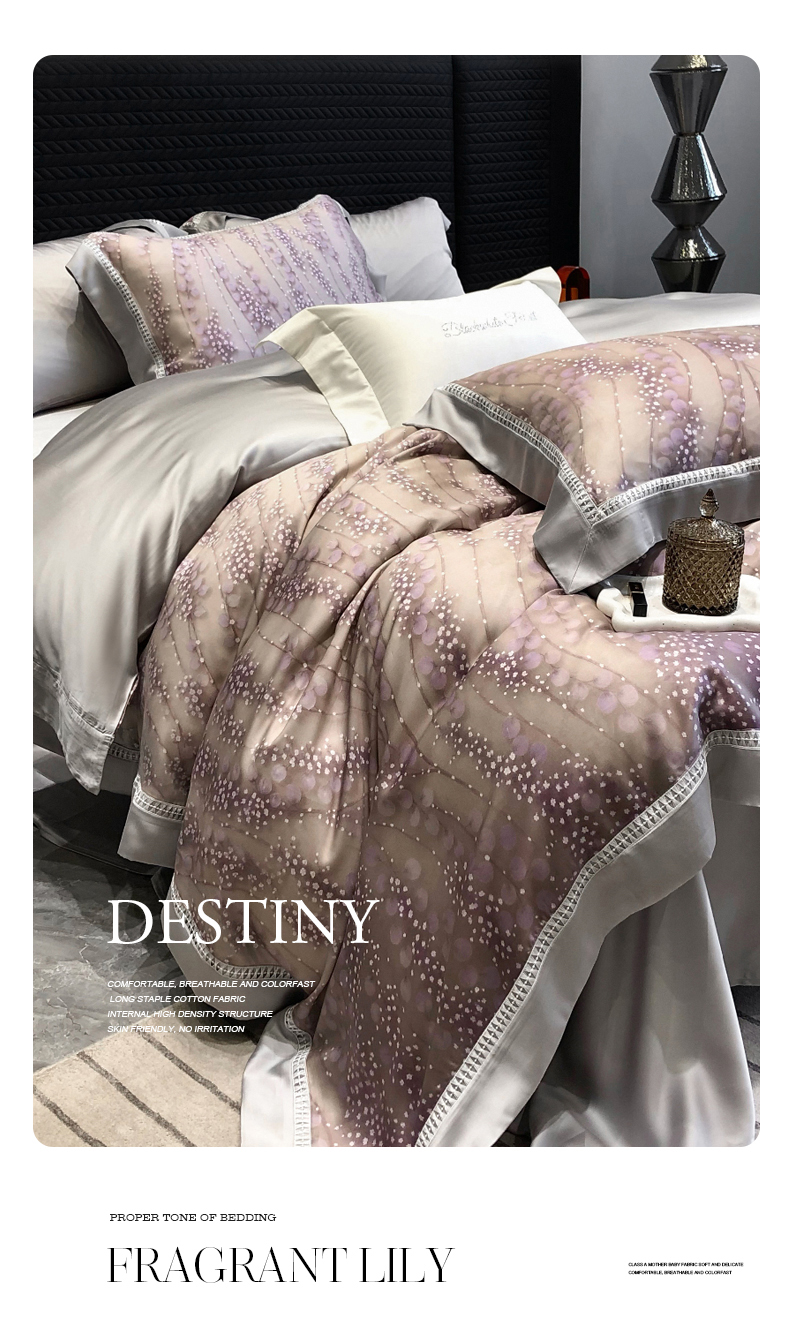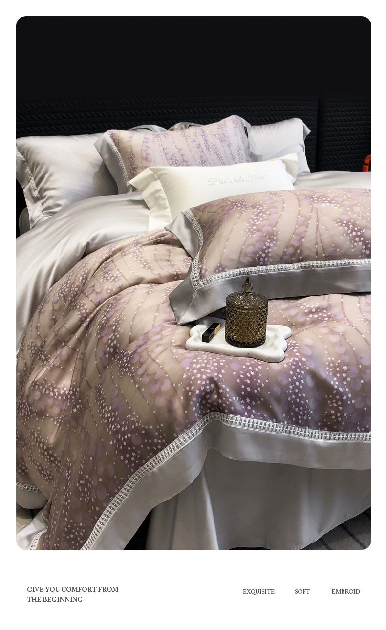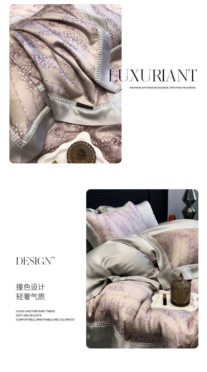 (总)黑白森林 2026新款天丝印花夏被四件套系列,邂逅-粉,邂逅-灰,云馥-粉,云馥-紫,紫嫣