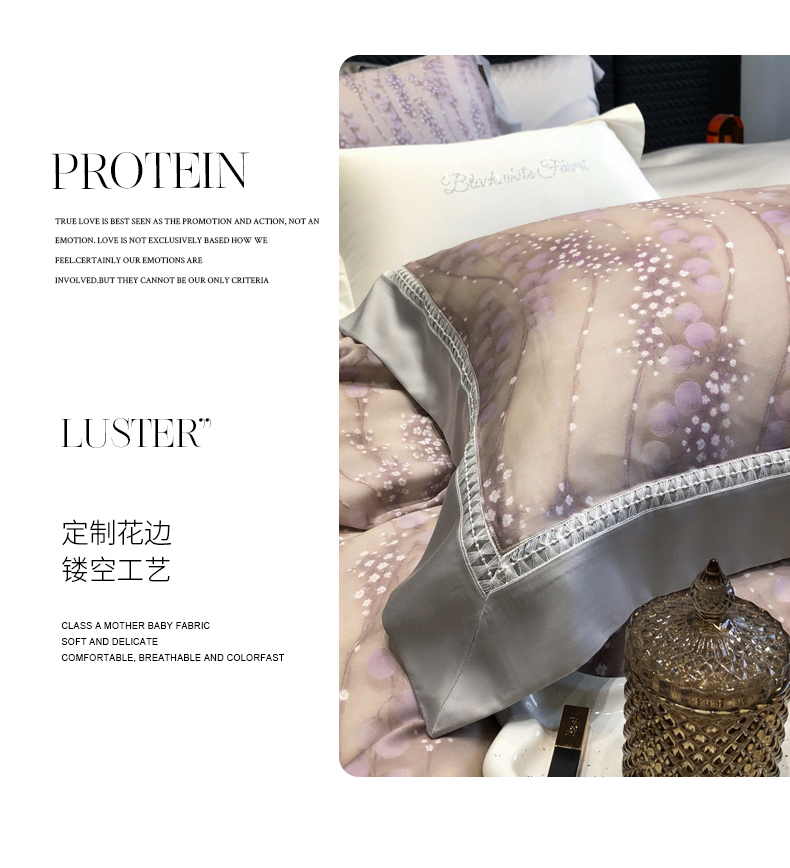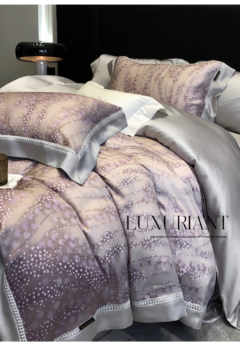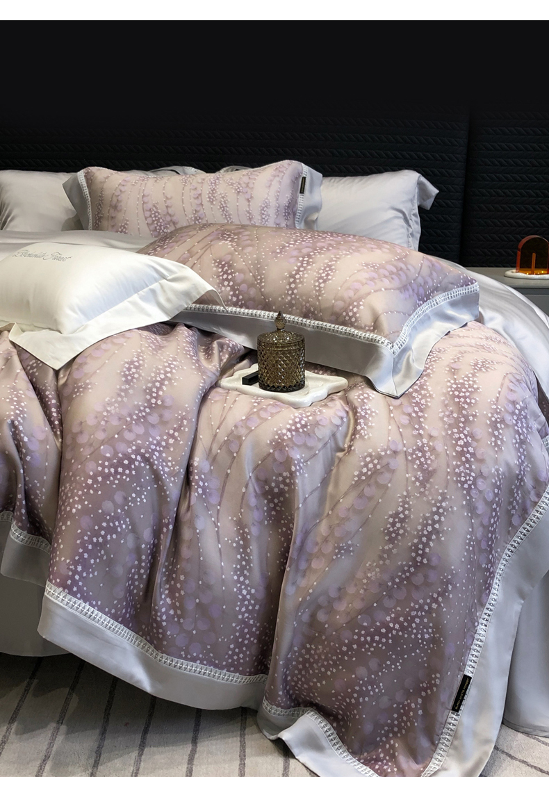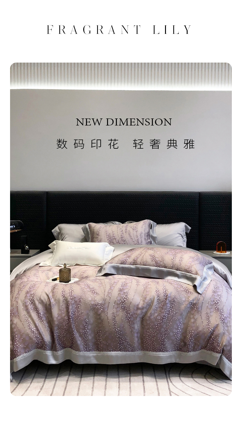 商品名称:黑白森林 2026新款轻奢天丝印花四件套 缦禾-紫