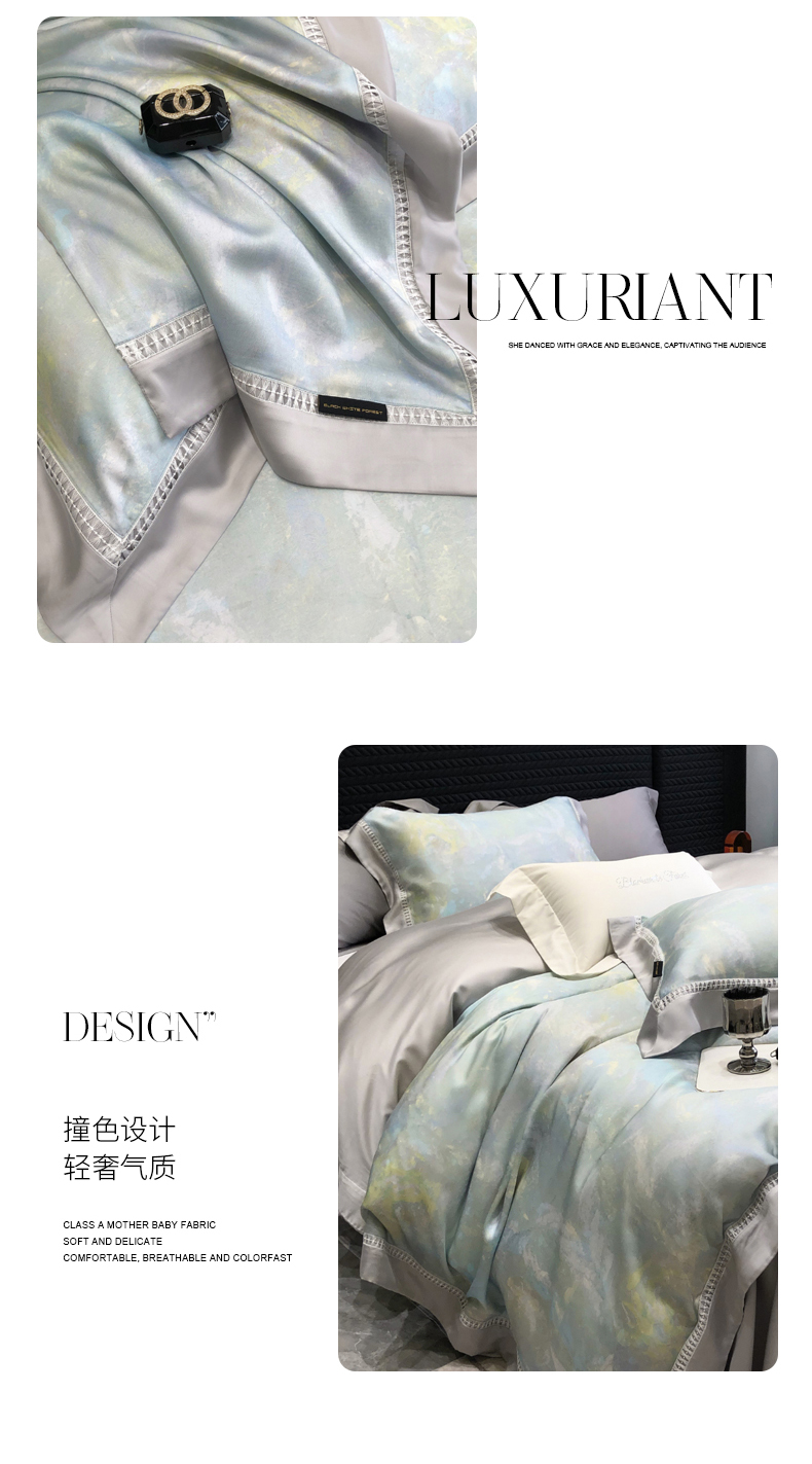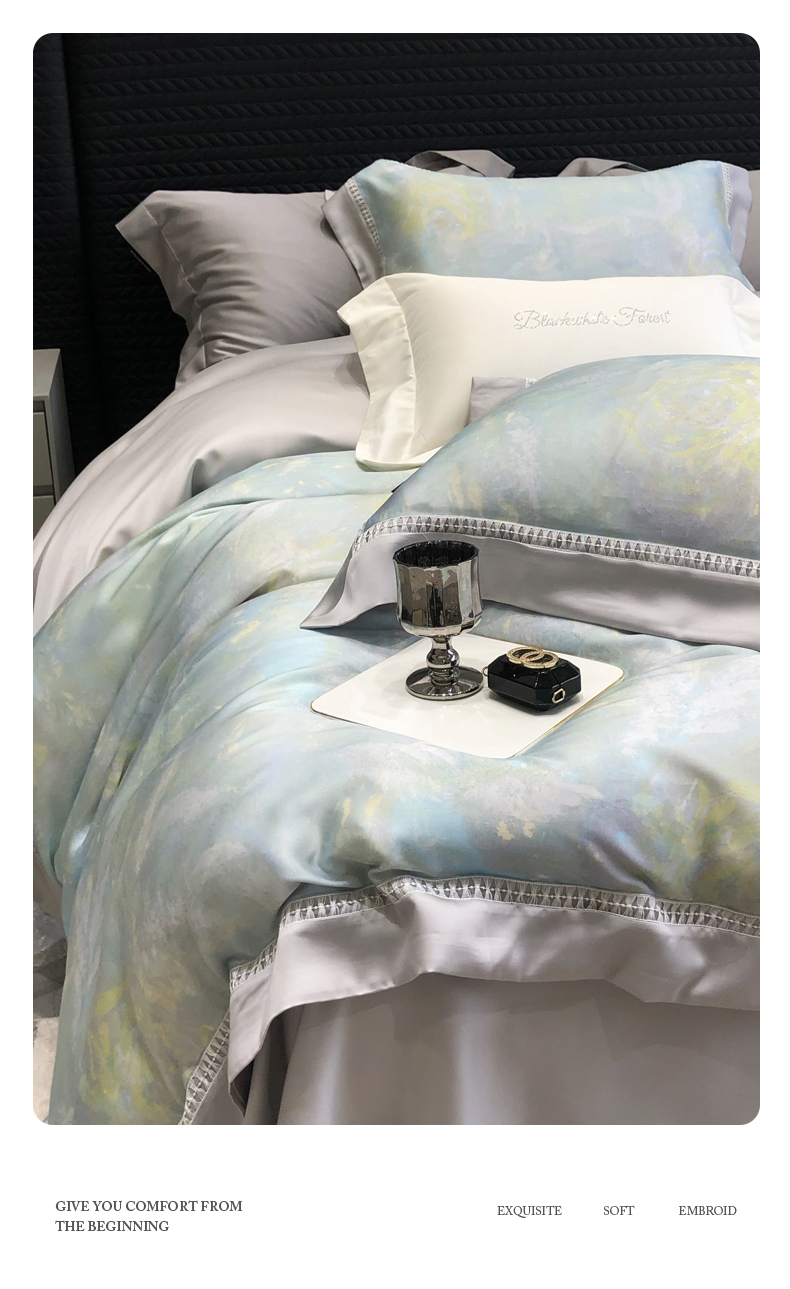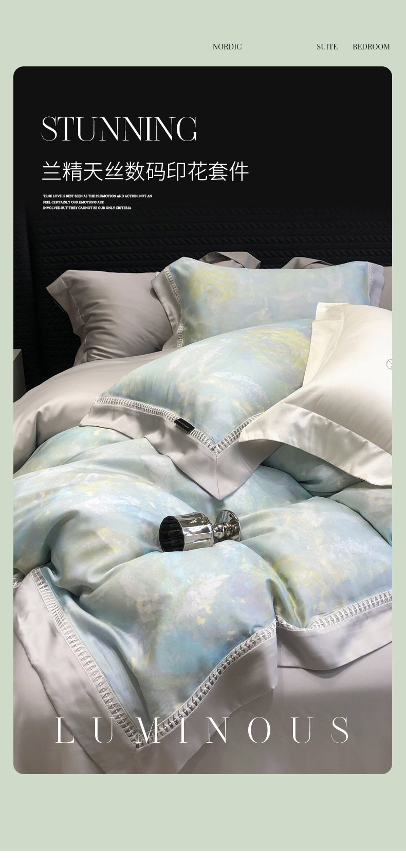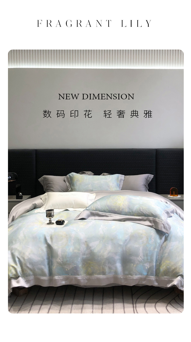 黑白森林2024款 50X50S高支天丝棉数码印花四件套天丝全棉,格伦黄,格伦绿,若瑶灰,羽笛蓝