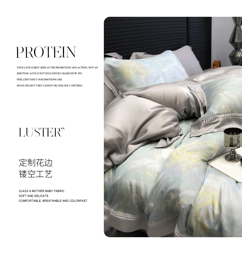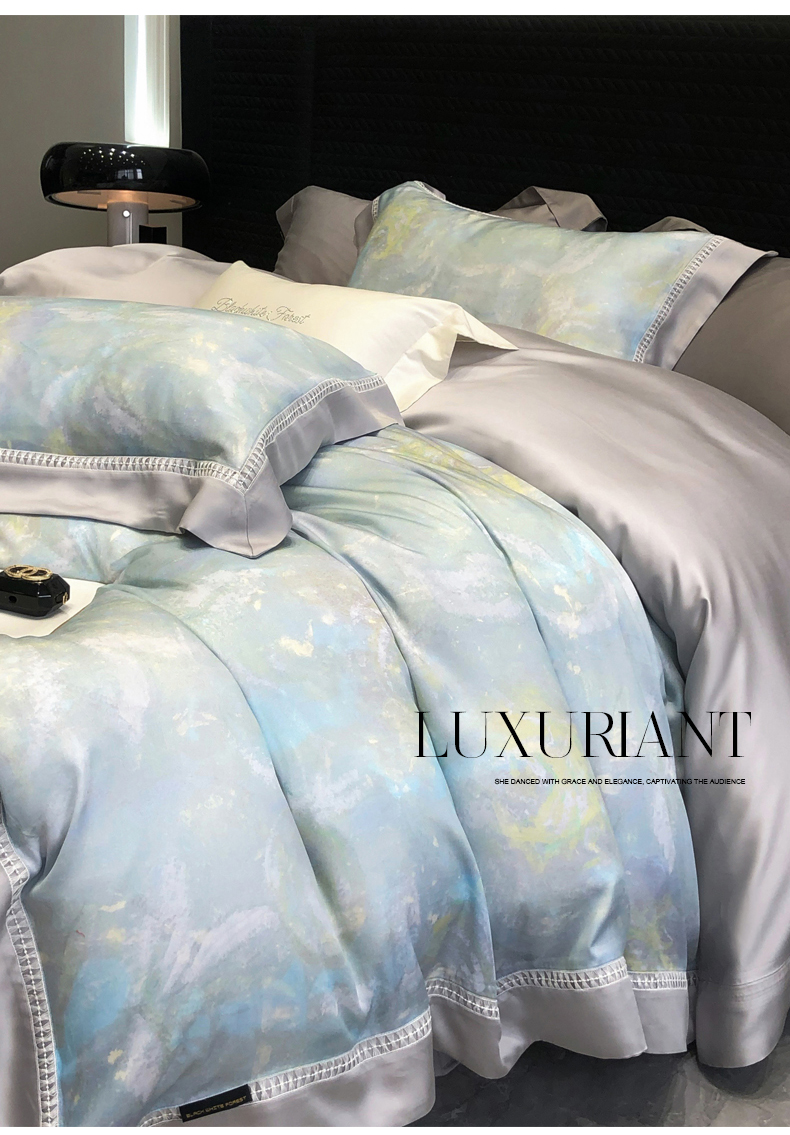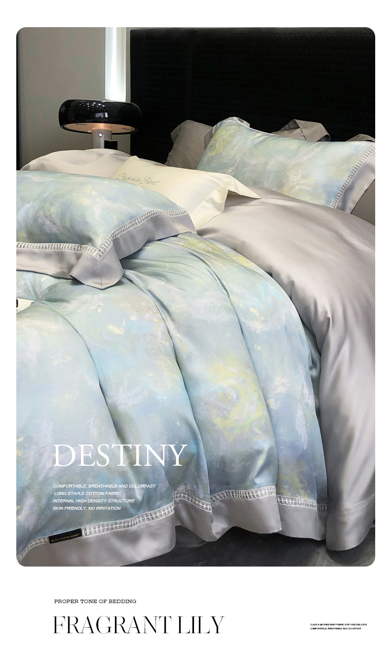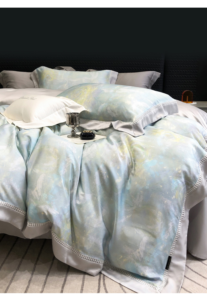 黑白森林2024款 50X50S高支天丝棉数码印花四件套天丝全棉,格伦黄,格伦绿,若瑶灰,羽笛蓝