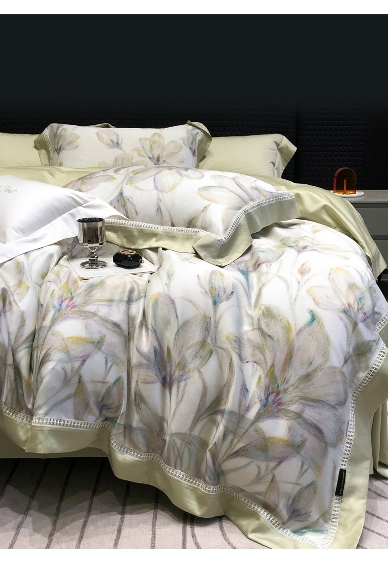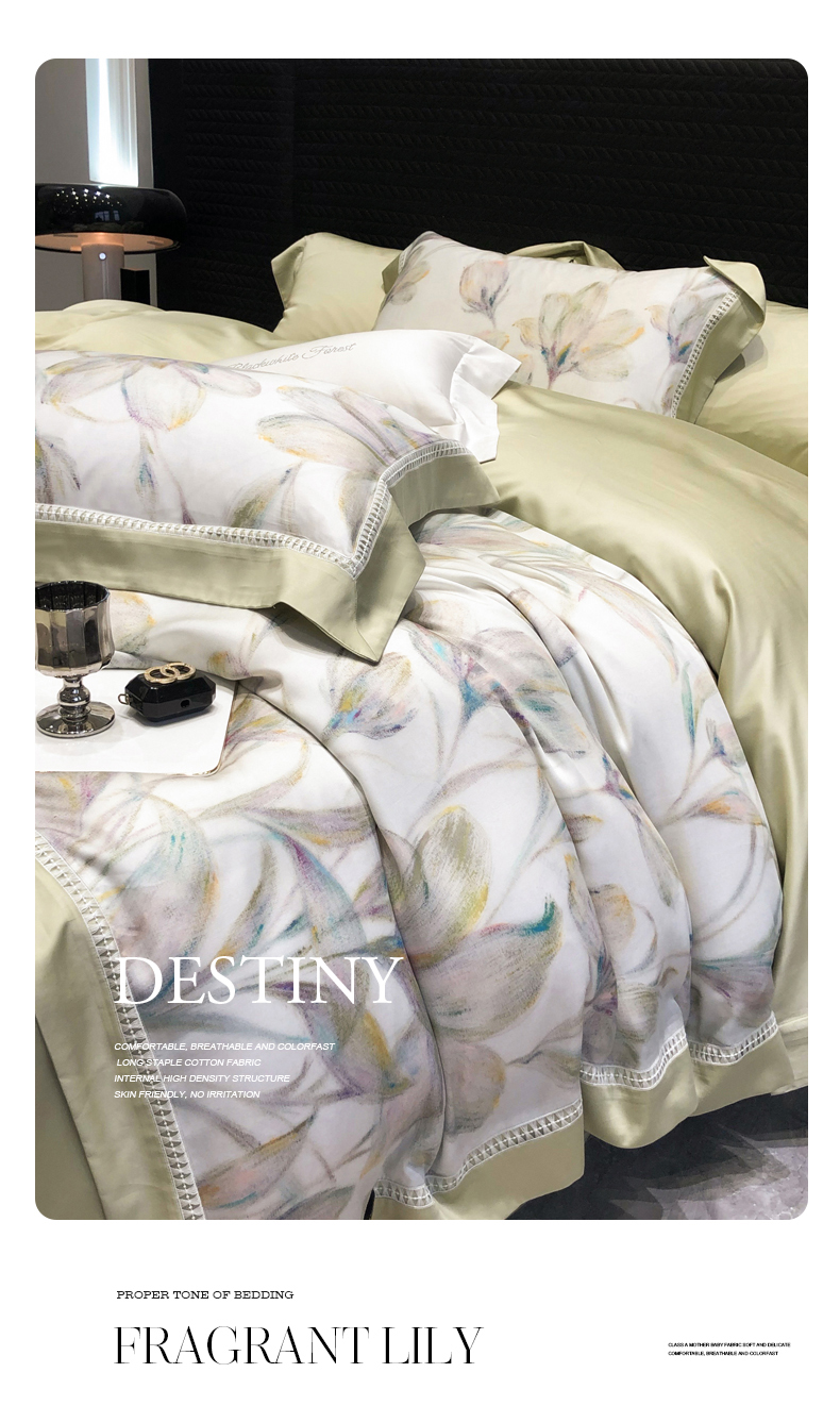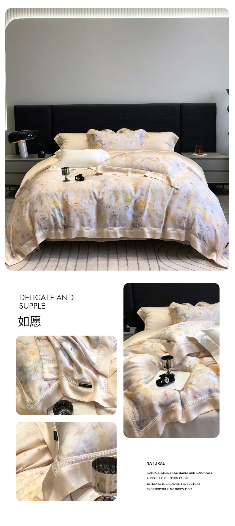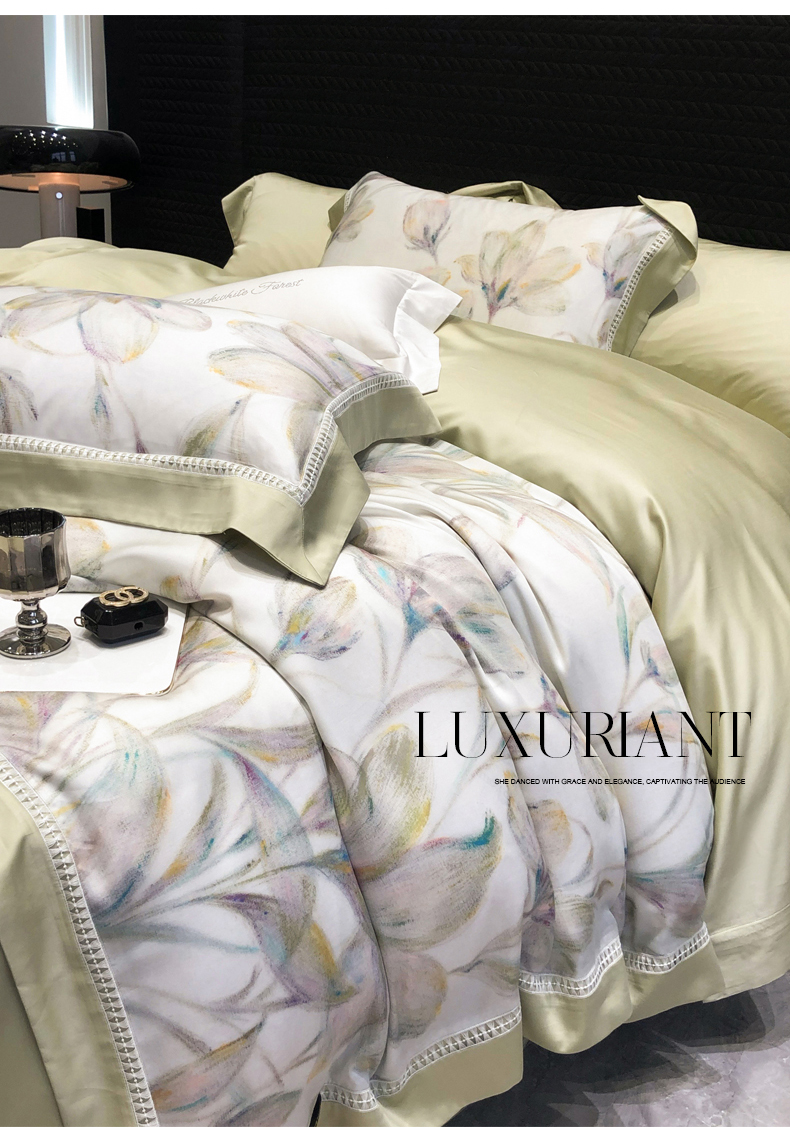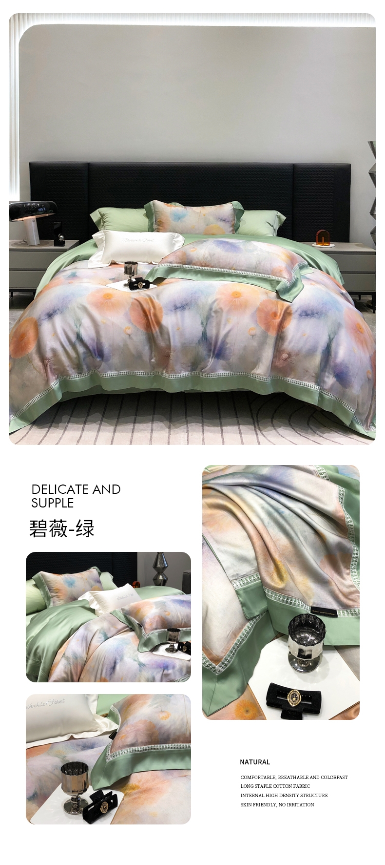 黑白森林2024款 50X50S高支天丝棉数码印花四件套天丝全棉,格伦黄,格伦绿,若瑶灰,羽笛蓝