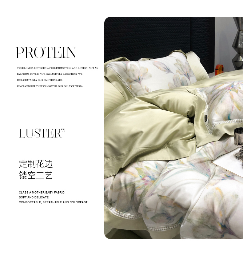 (总)黑白森林2024款 80X80S高支天丝棉四件套镂空蕾丝花边天丝全棉,尚美-晨夕粉,尚美-古象白,尚美-青砂绿,尚美-银雪灰