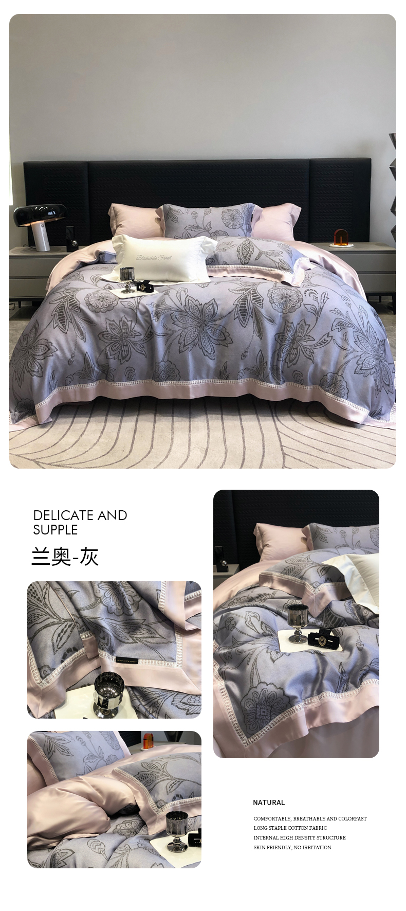 黑白森林2024款 100S支天丝棉提花四件套天丝全棉,芙拉维-裸灰,芙拉维-秋绿,圣露安-雾粉,圣露安-香槟,西西里-奶白,西西里-柔粉