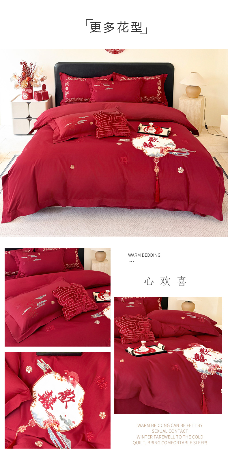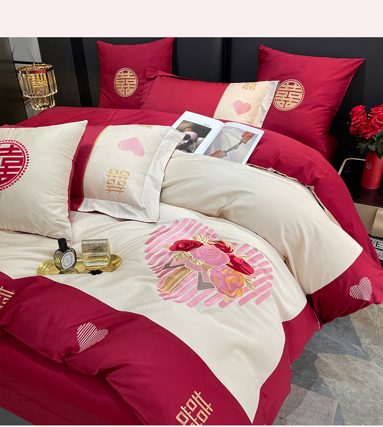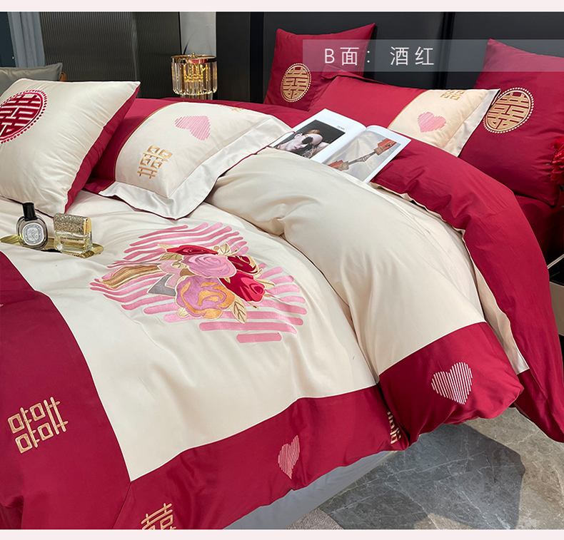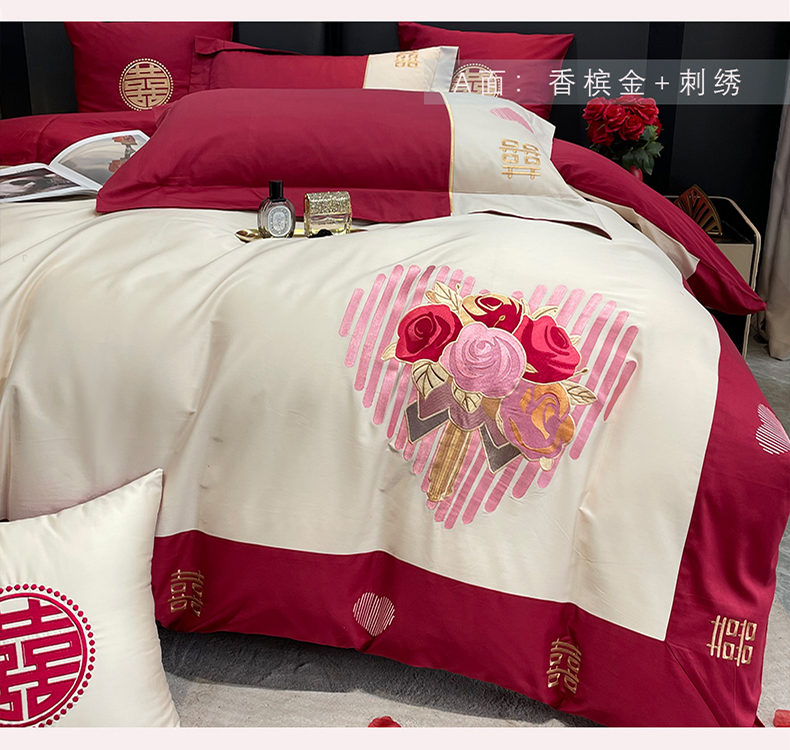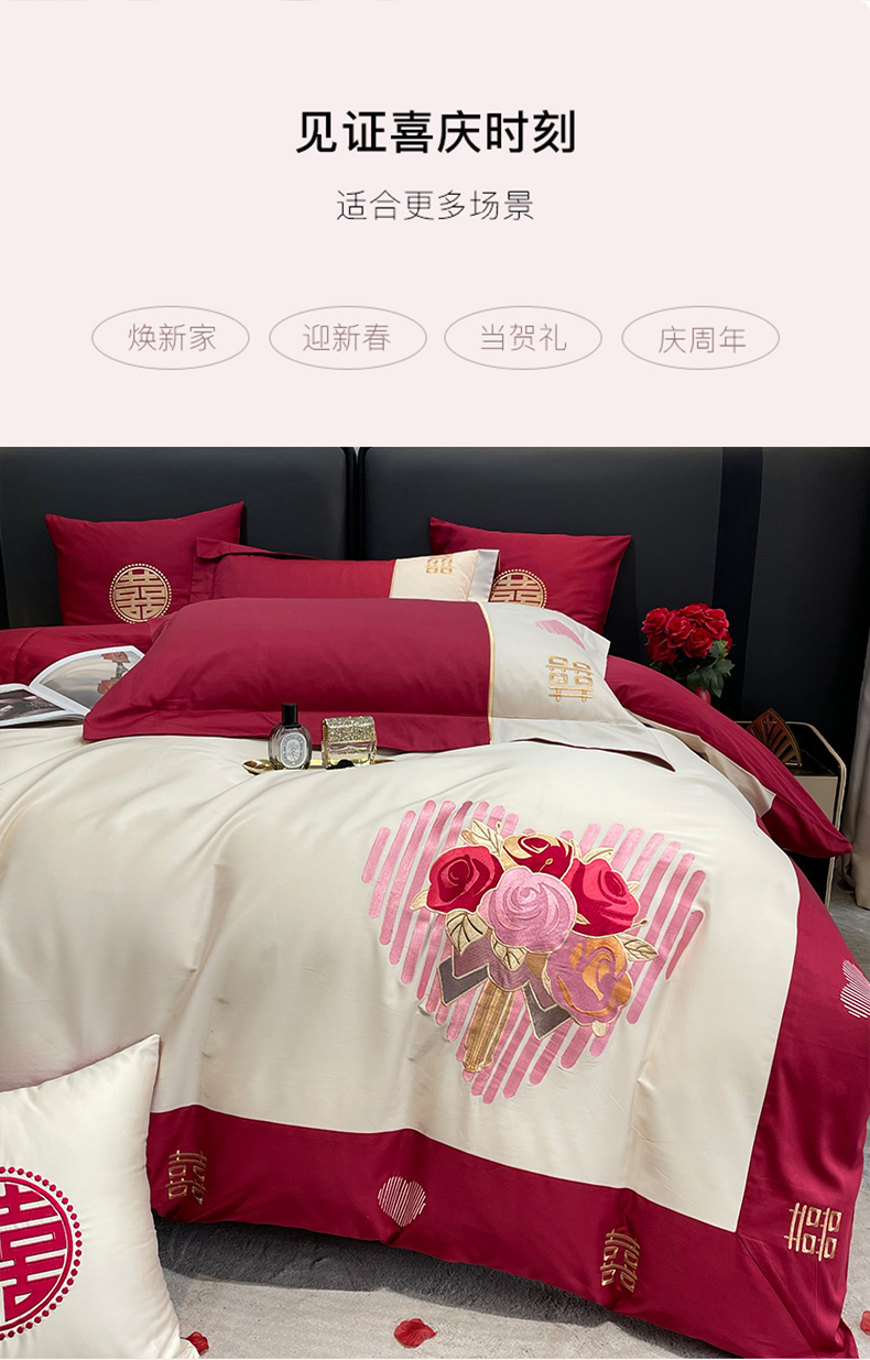 (总)甜咪咪婚庆 2025新款50支长绒棉全棉婚庆床单床盖四件套多件套刺绣工艺,洛可可,爱恋小熊,爱意久久,多子多福,花田喜事,节节高升,克拉恋人,浪漫情怀,怦然心动红,怦然心动玉,甜心玫瑰,温莎公主,伊甸园,醉红妆