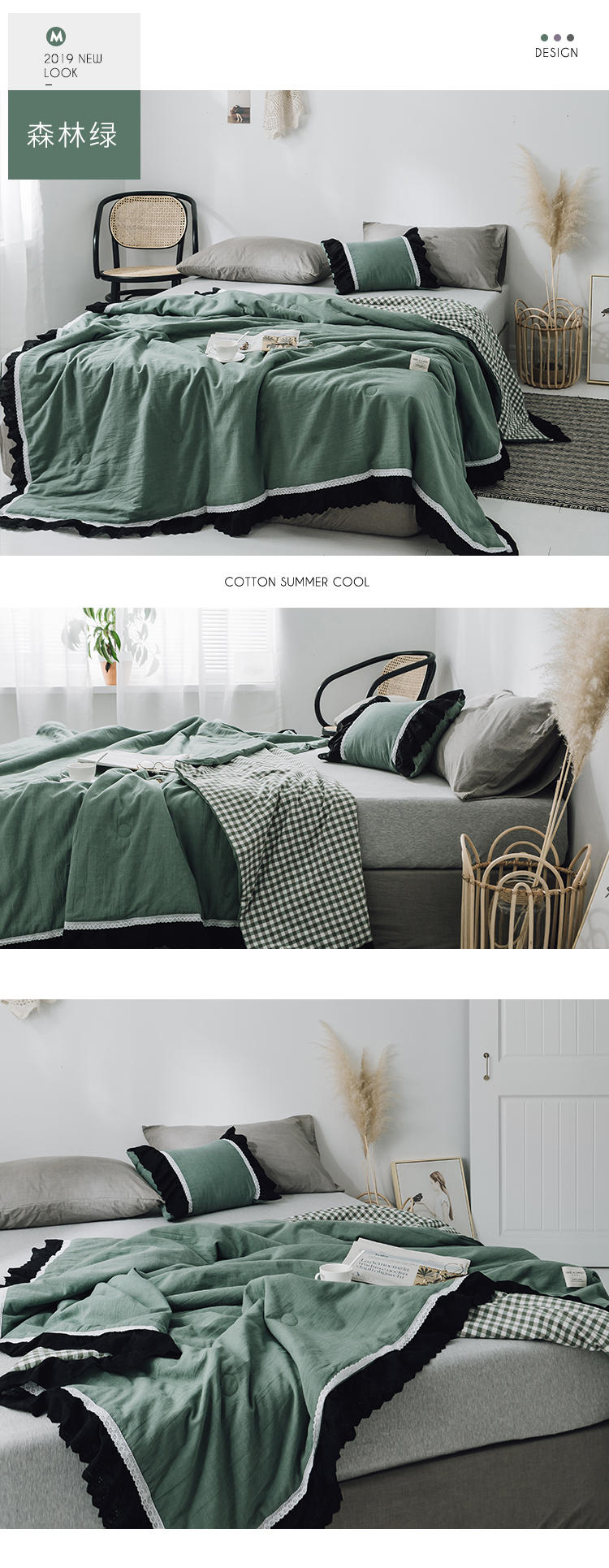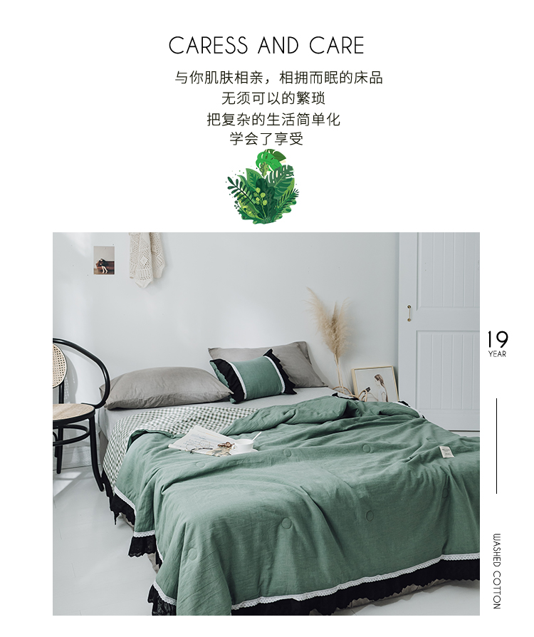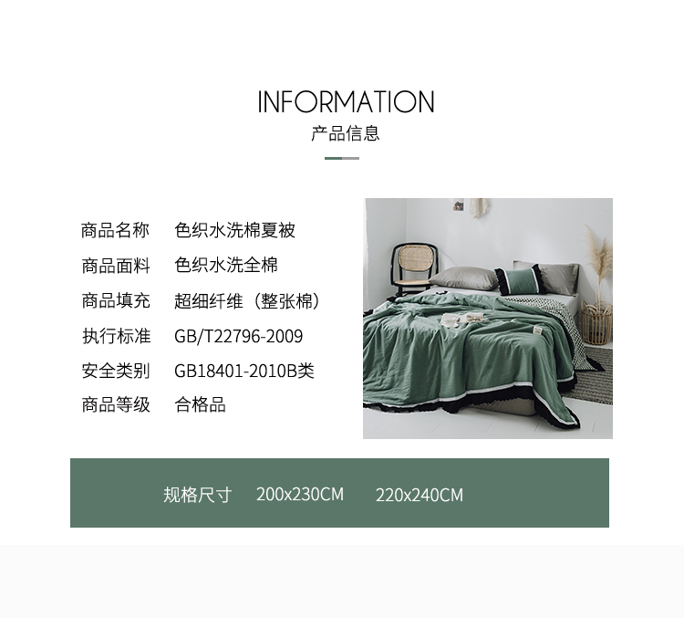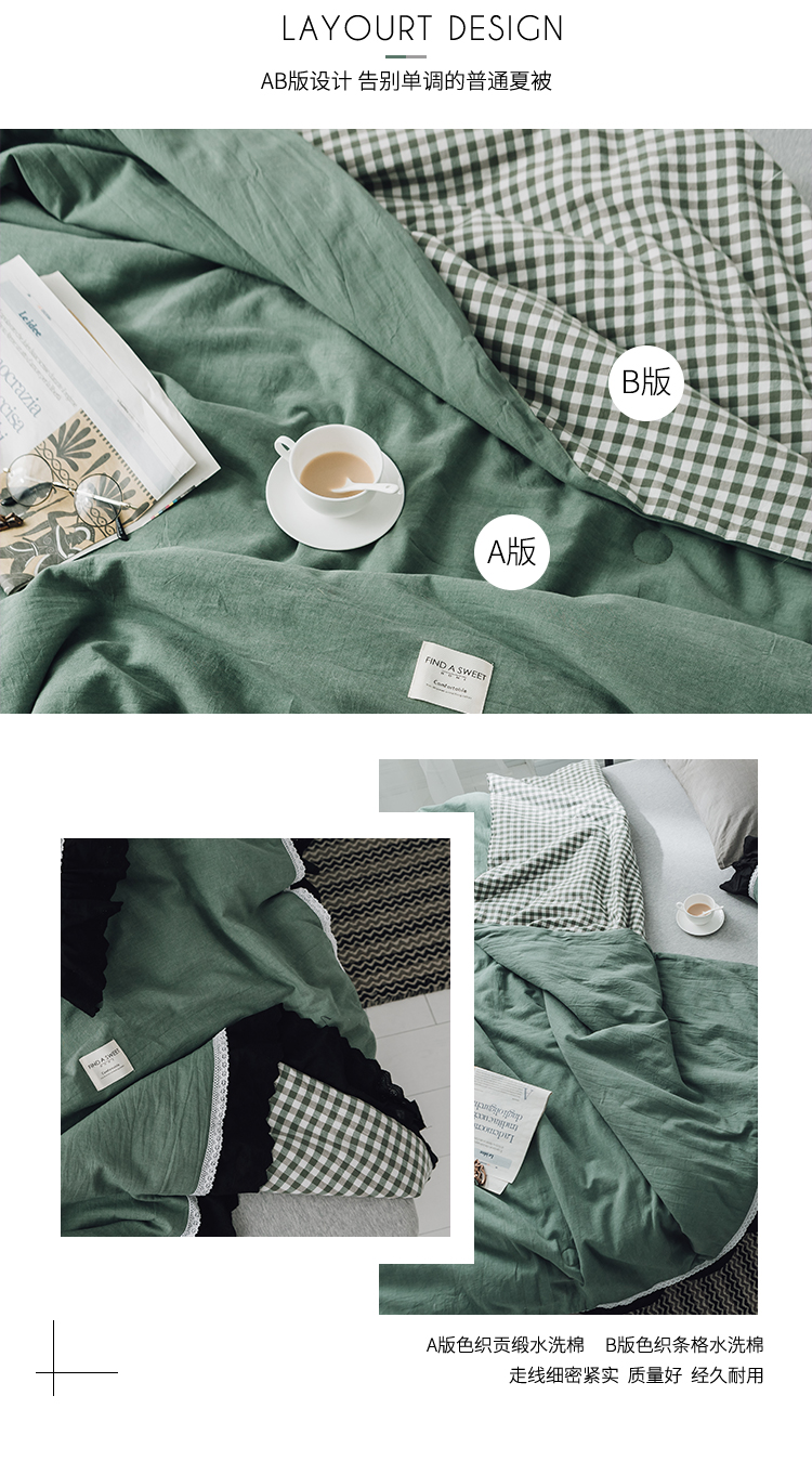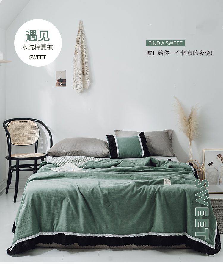 商品名称:润缦 2019新款色织贡缎水洗棉夏被森林绿