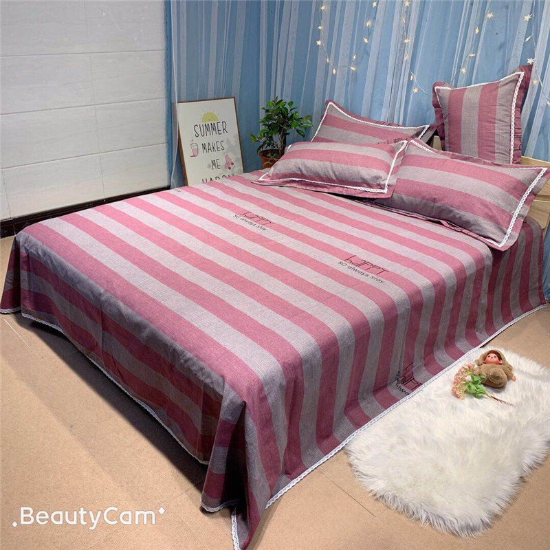 仟网汇 2020年新款老粗布三件套软凉席 红宽条