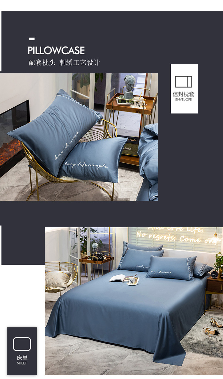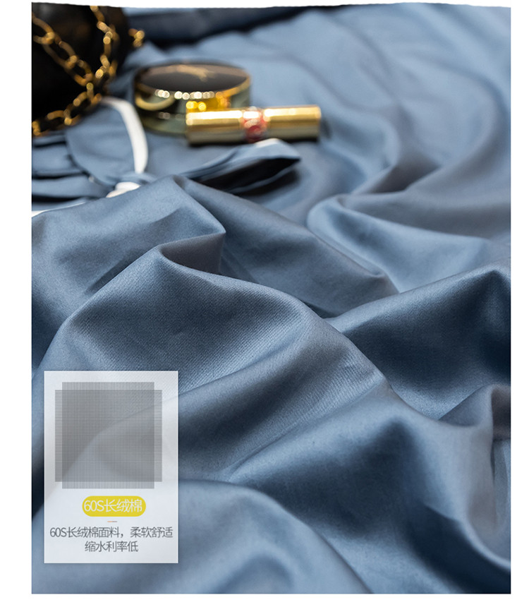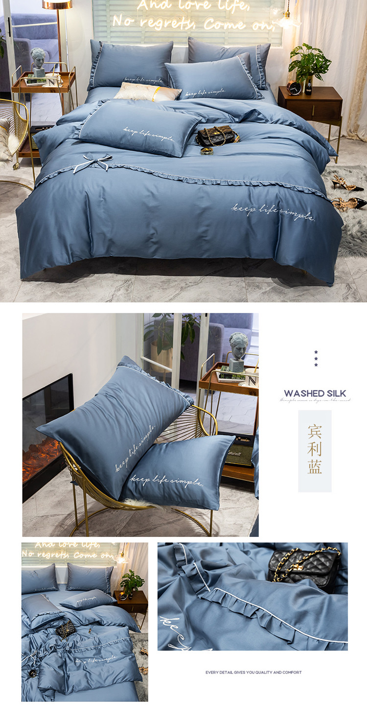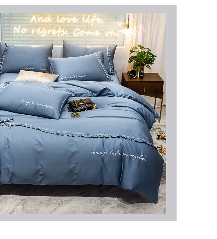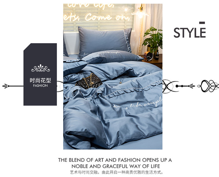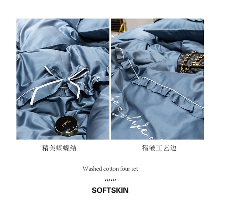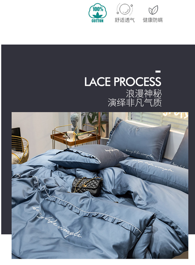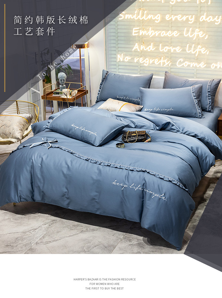 娇逸家纺 201960长绒棉简韩版安妮系列四件套 宾利蓝