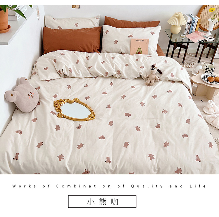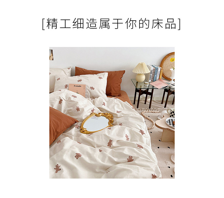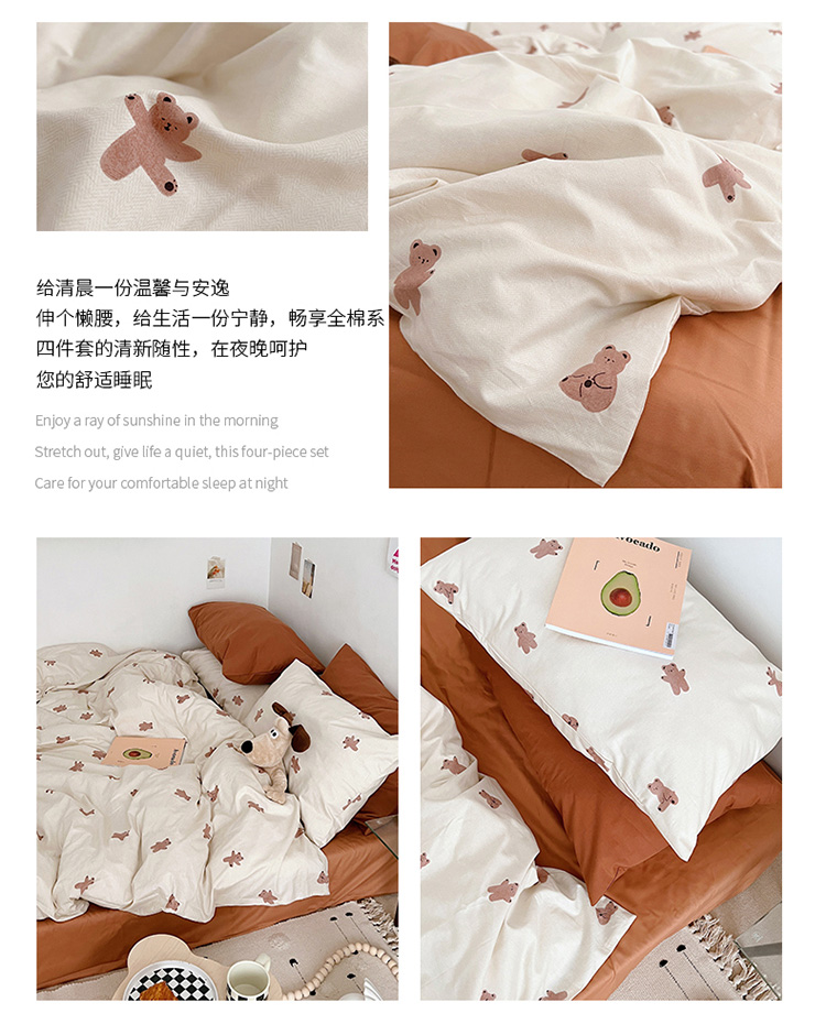 当前位置: 91家纺网 > 商品网购 > 床品套件 > 四件套 > 全棉普通四件套 > 艾沁家纺 2022新款13372纯棉碎花四件套-小熊 咖