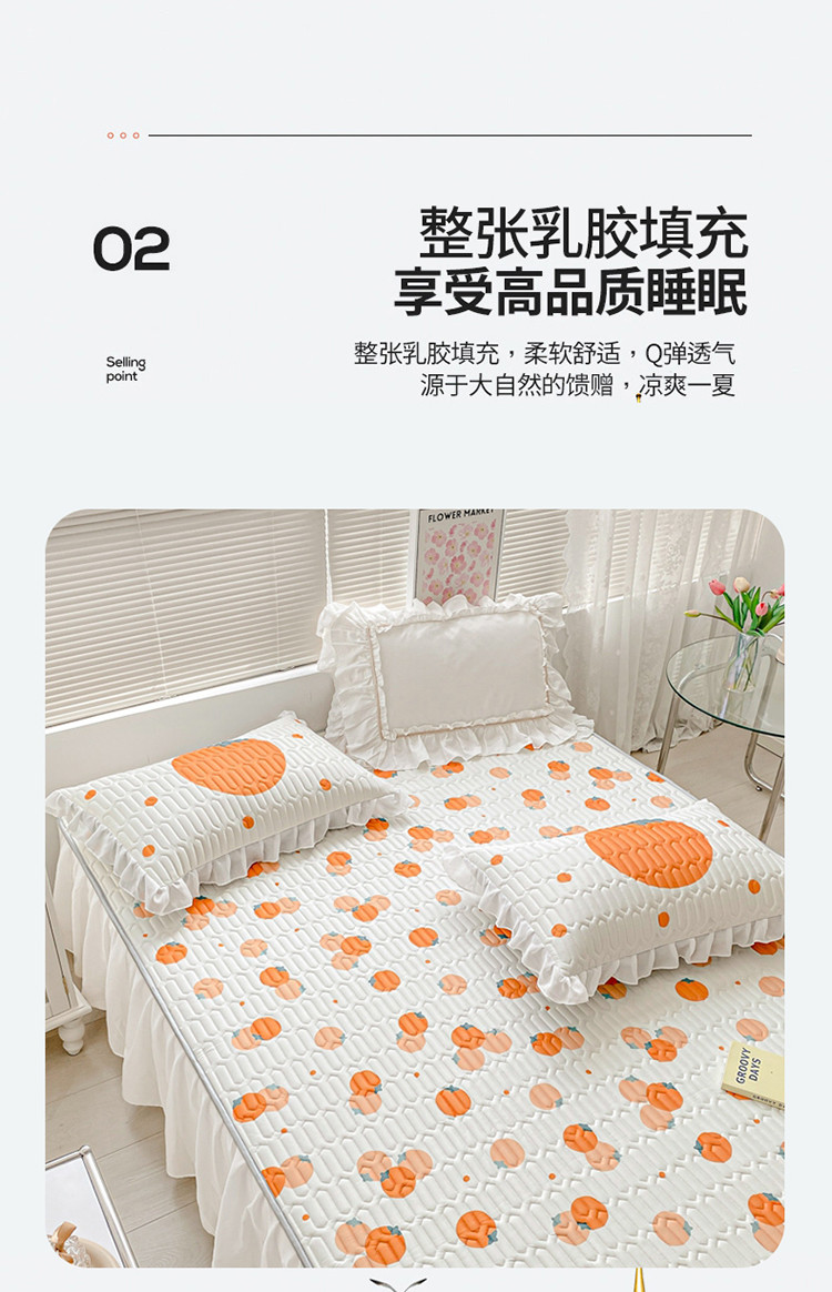 佰亿莱 2024新款韩版床裙款乳胶凉席三件套 甜橘乐园