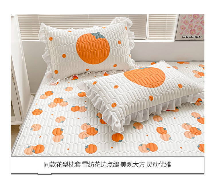 商品名称:佰亿莱 2024新款韩版床裙款乳胶凉席三件套 甜橘乐园