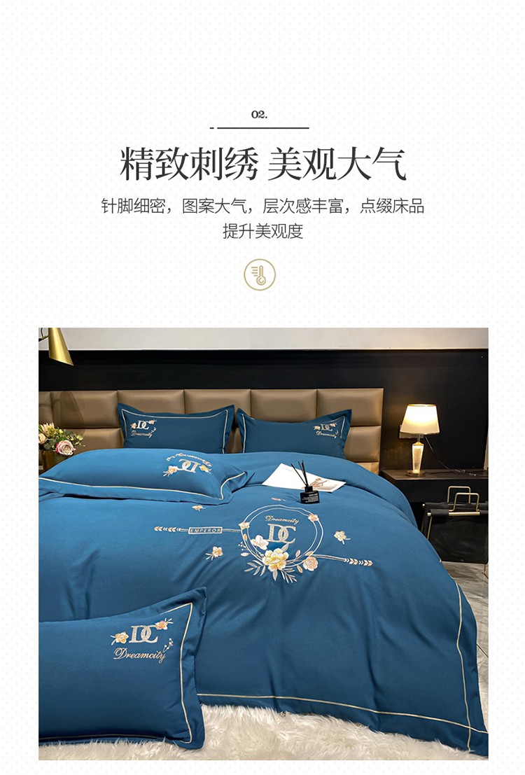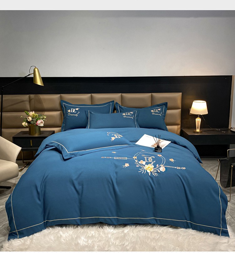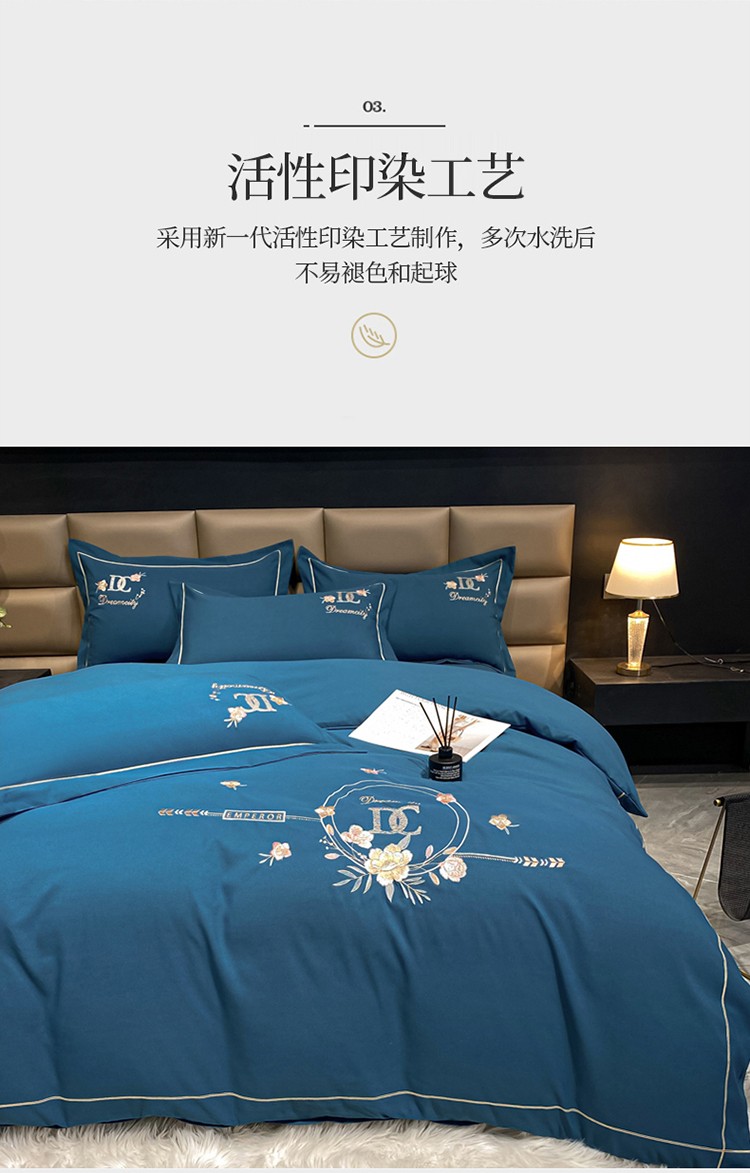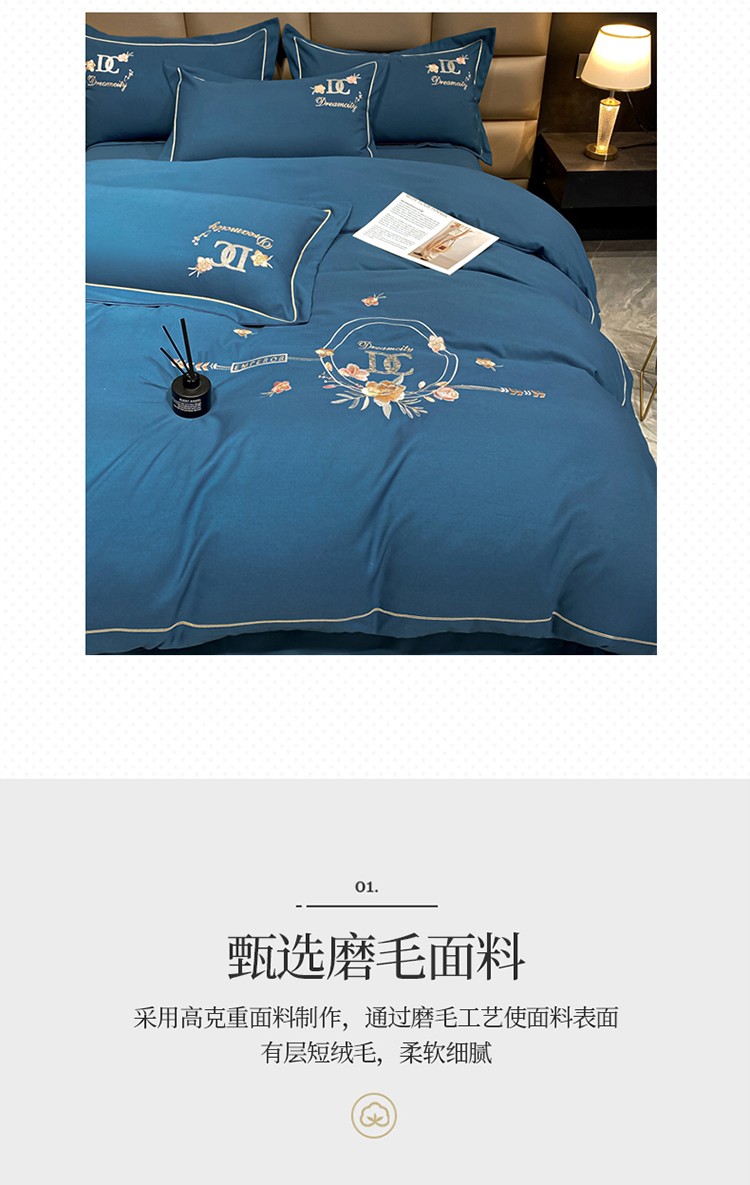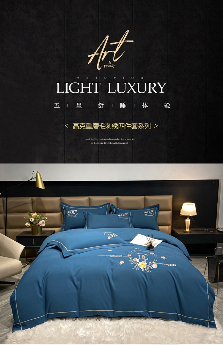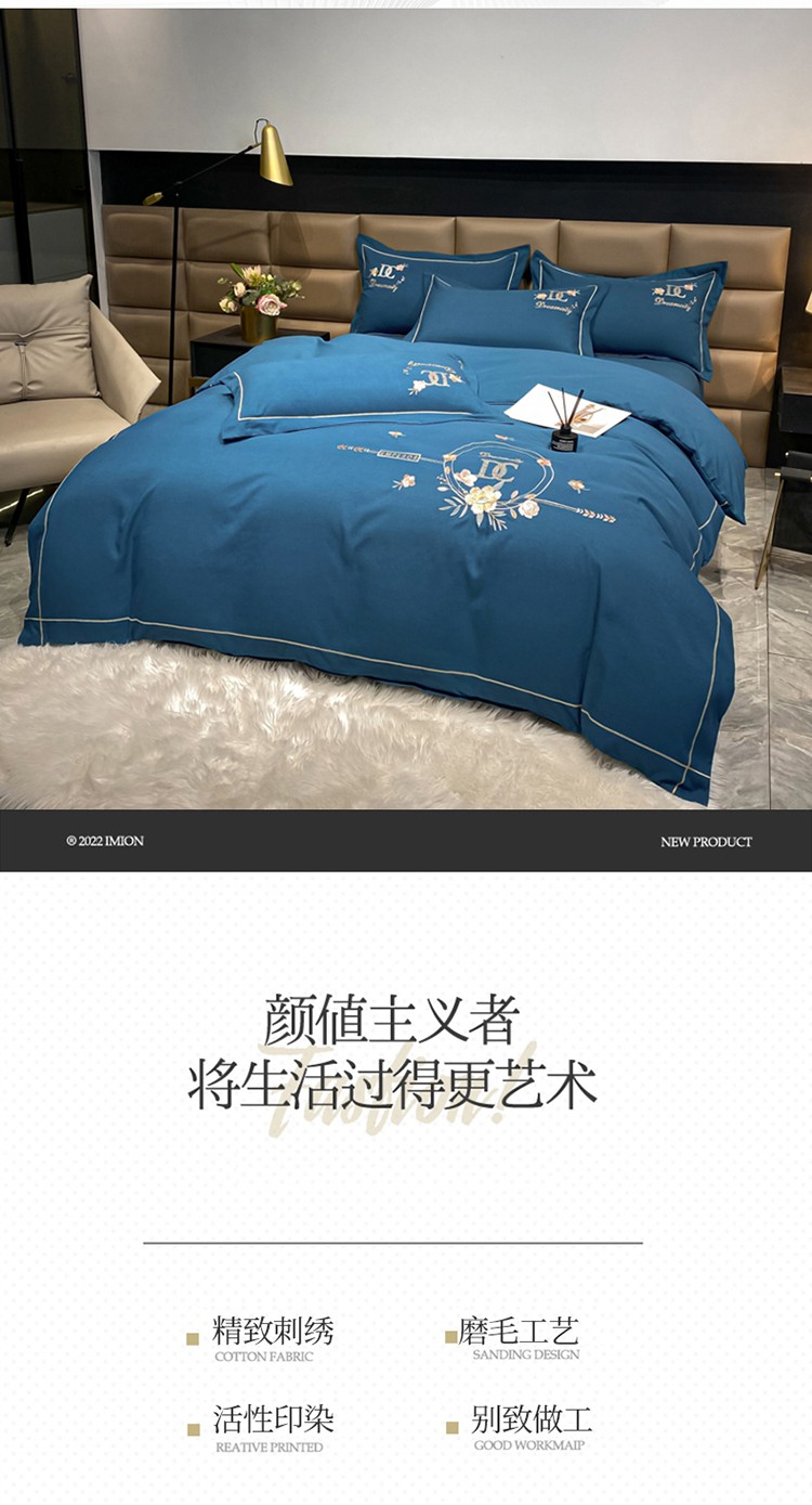 靓生活 2022新款高克重磨毛刺绣四件套 相爱一生-蔚蓝