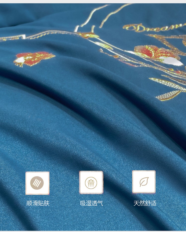 商品名称:靓生活 2022新款高克重磨毛刺绣四件套 相爱一生-蔚蓝