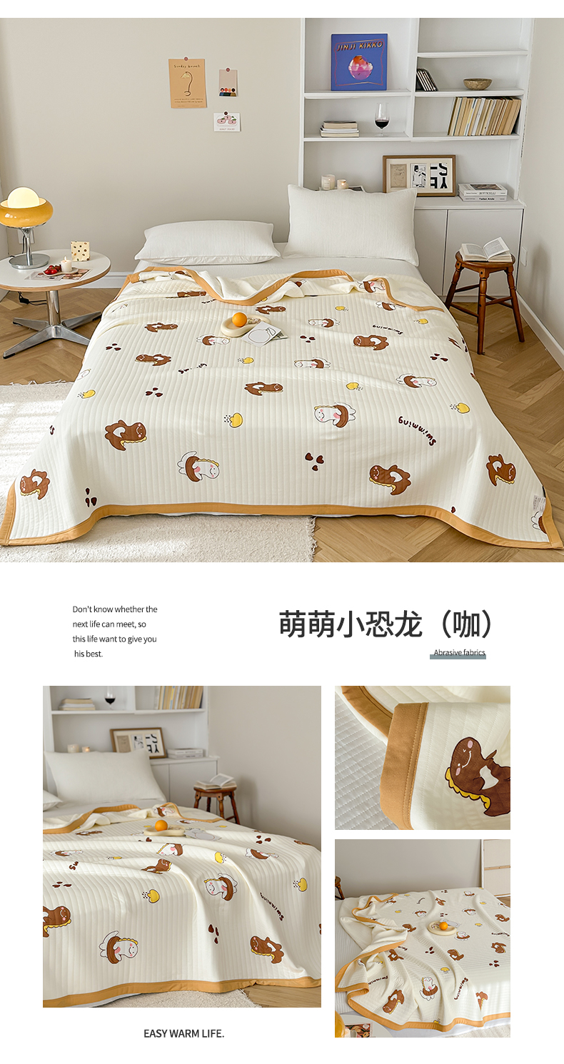商品名称:吾秀 2023新款A类棉代尔针织棉毯 萌萌小恐龙(咖)