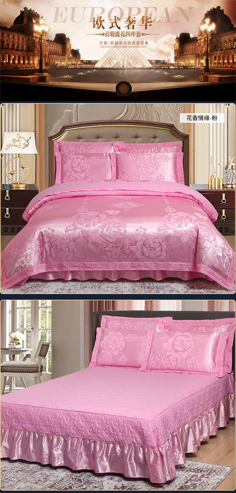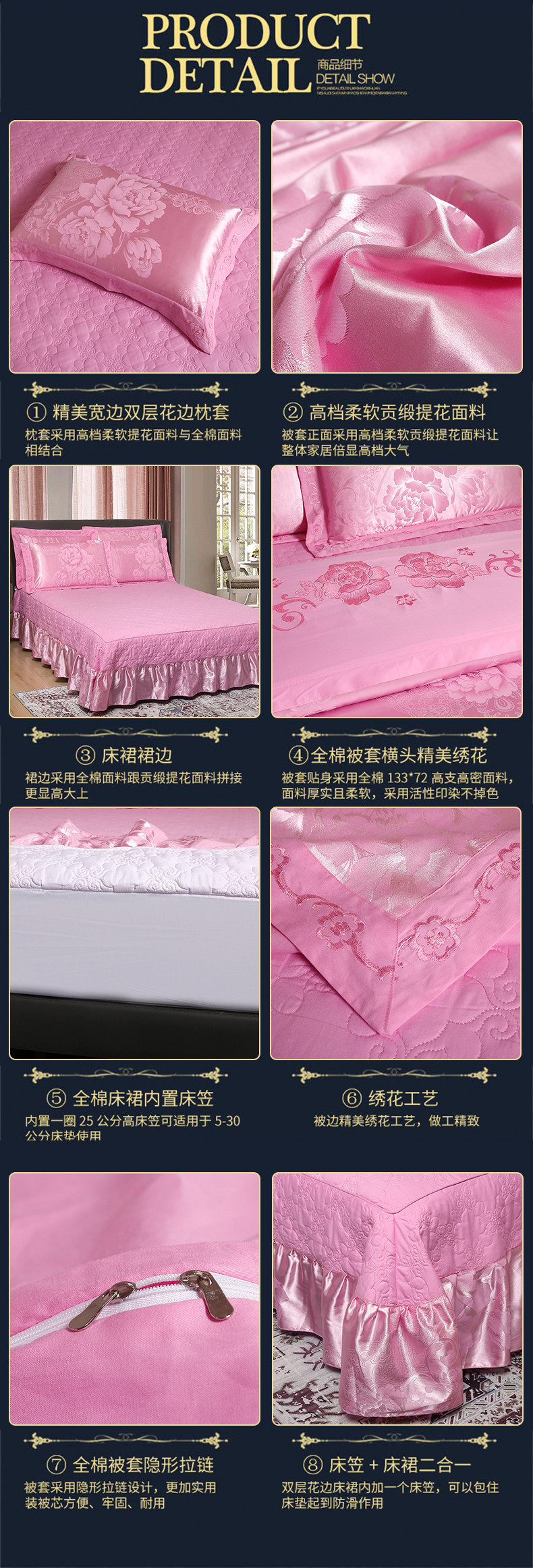 商品名称:福丽莱家纺 2023新款贡缎提花床裙四件套(夹棉)花香情缘-粉